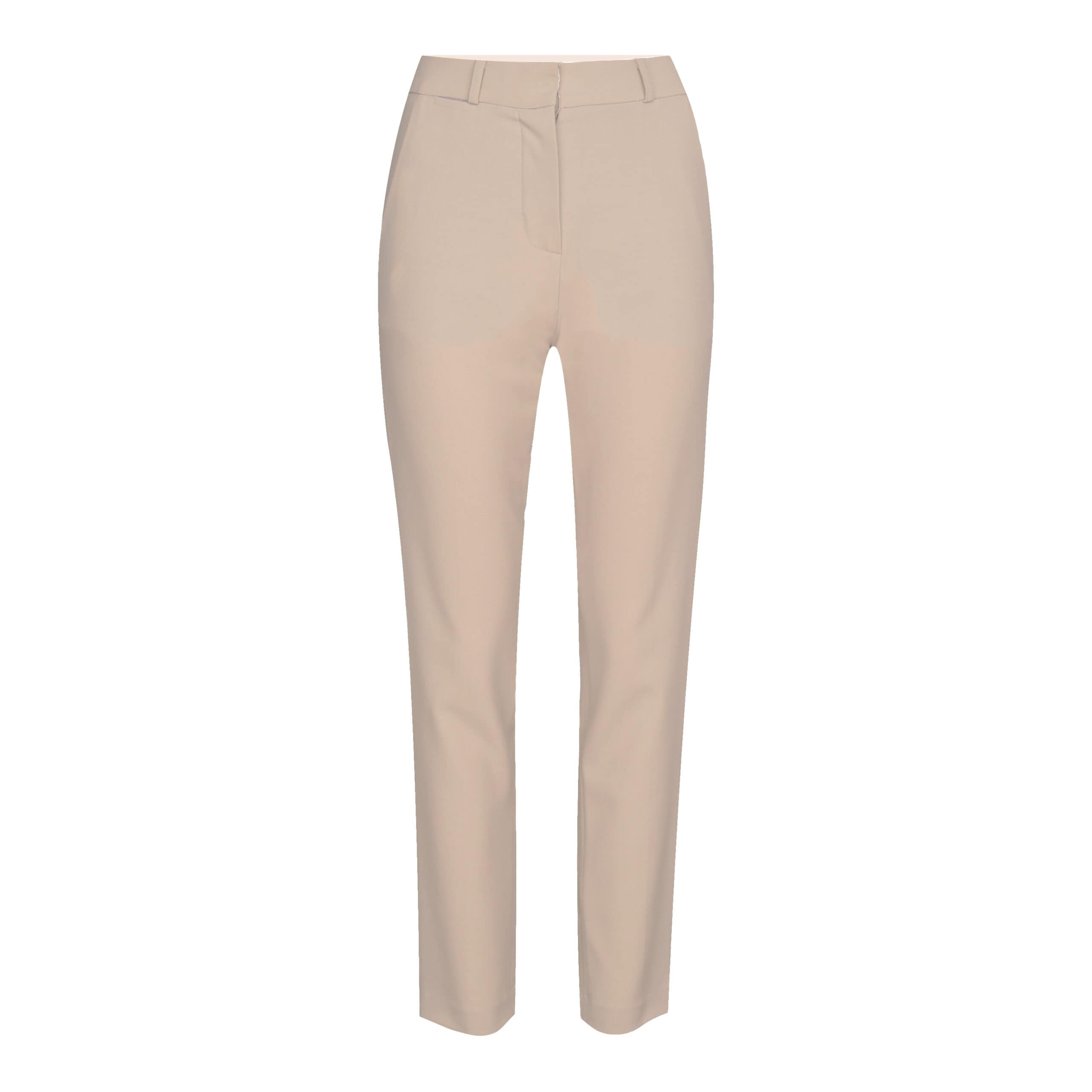 Wollen pantalon van Alysi in cream. Deze off white pantalon is gemaakt van wol met stretch en heeft taps toelopende broekspijpen. De broek sluit met een haakje, knoop- en ritssluiting, twee steekzakken en paspelzakjes.