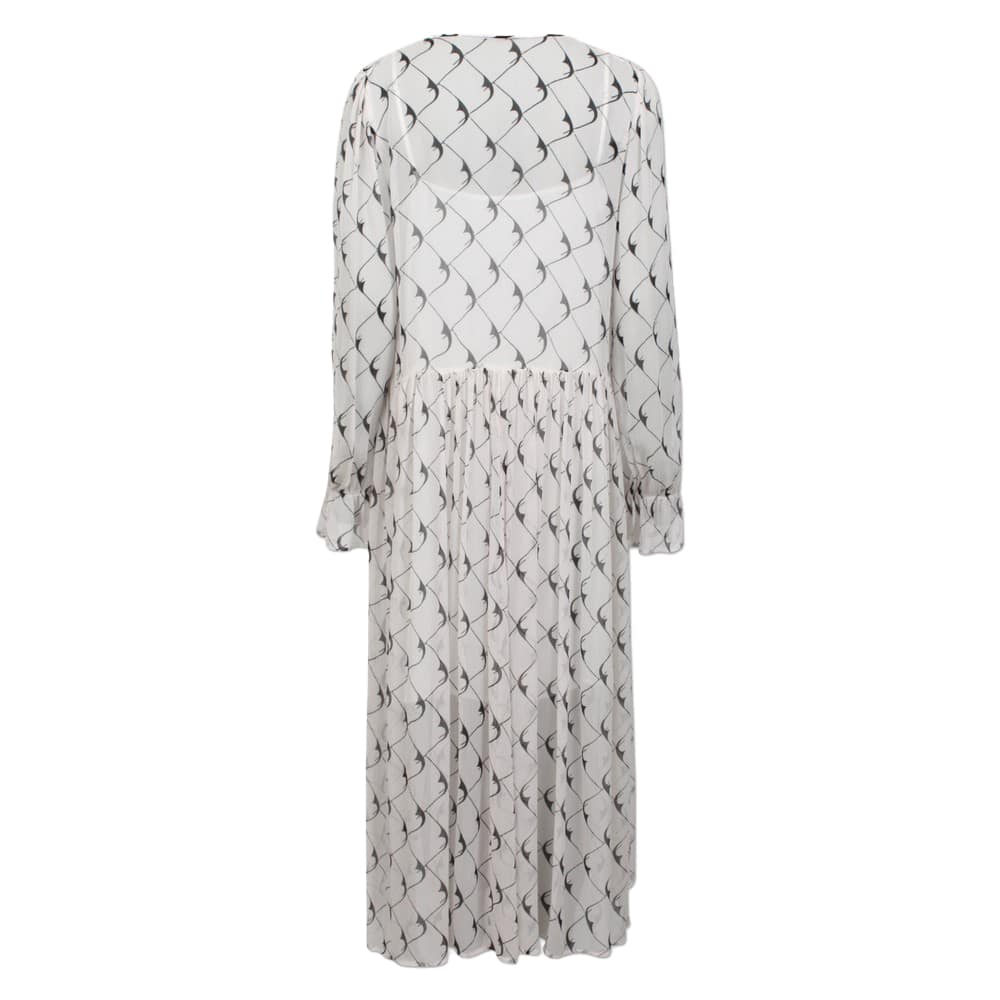 Midi kleedje van Baum und Pferdgarten, model Axelle. Deze jurk is voorzien van een onderjurk en gemaakt van een crème stof met een boemerang tekening. De jurk heeft overslag body met een V-hals, verhoogde taille, lange mouwen en valt losjes over de onderjurk heen.