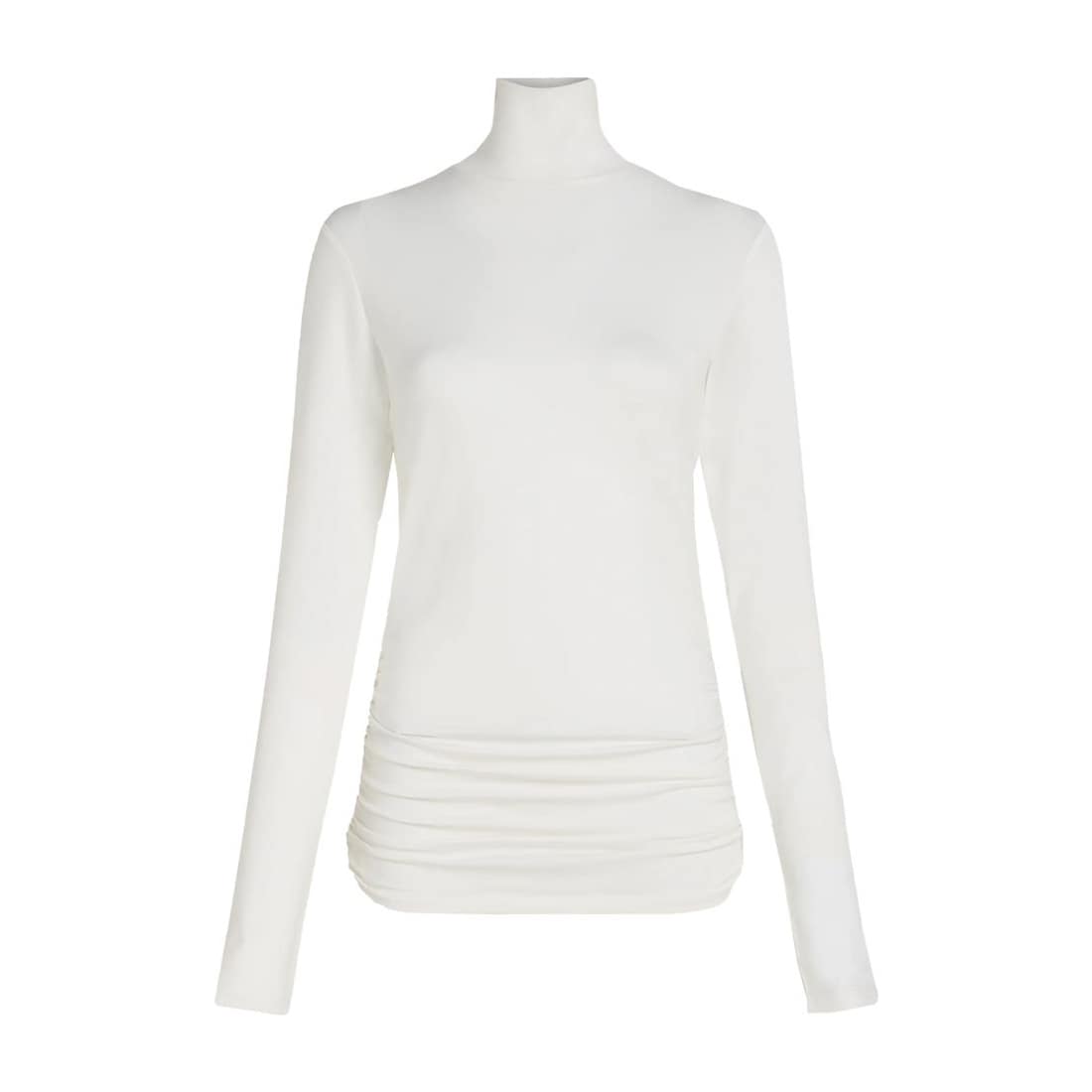 Ecru top van Beaumont, model Phoebe. Deze top is gemaakt van een gladde stretch stof en heeft lange mouwen. De top heeft een col, aansluitende pasvorm en is op de buik geplooid.