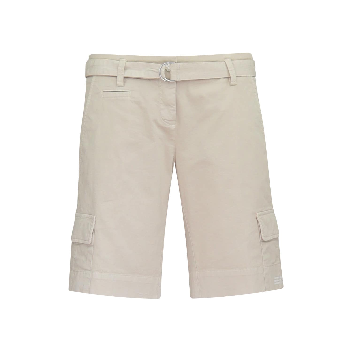 Beige short van Cambio, model Billie. Deze korte broek is gemaakt van een katoenen stretch stof en heeft een normale taille. De short sluit met een knoop- en ritssluiting, heeft twee steekzakken, twee pocketzakken, sier paspelzakken en een bijpassende ceintuurtje.