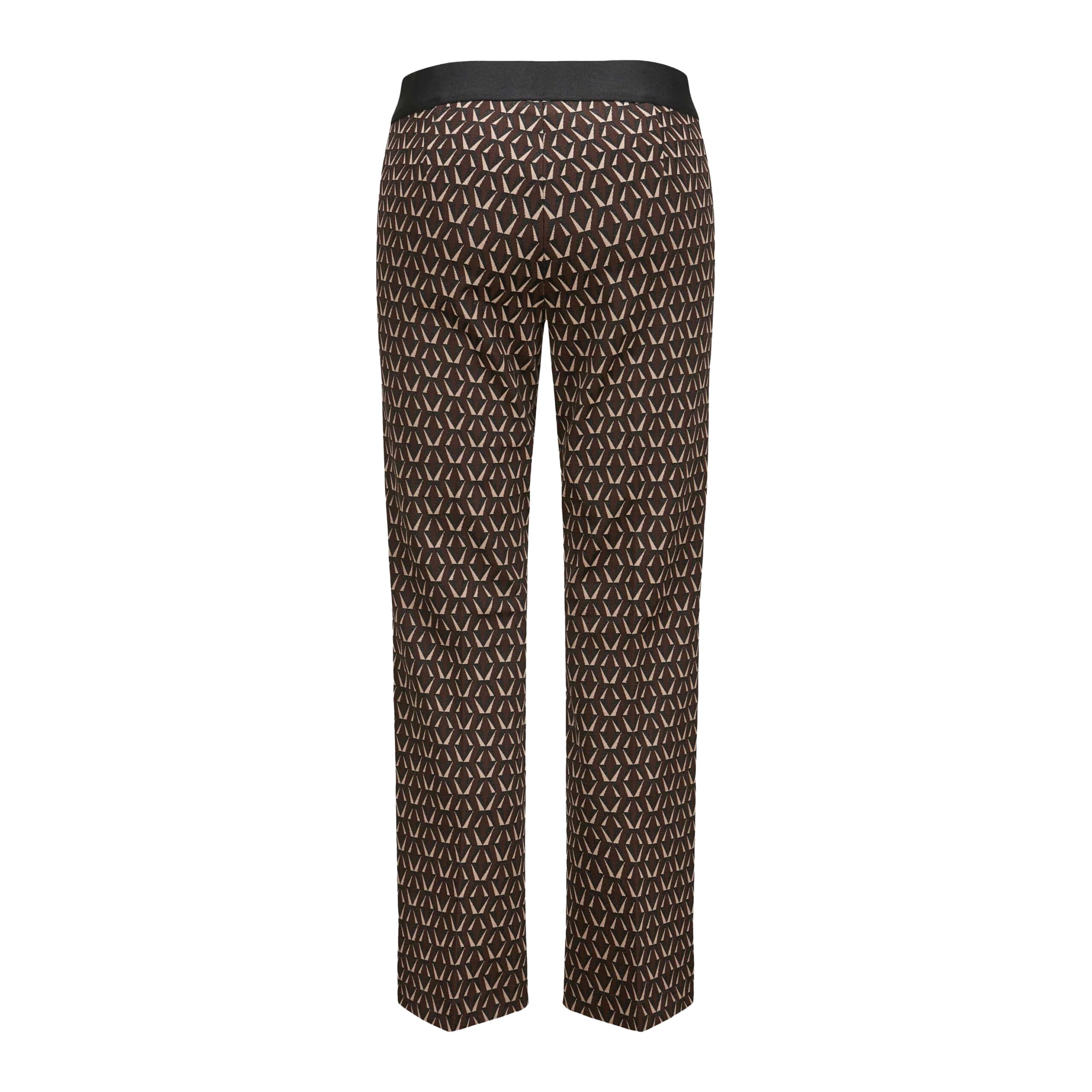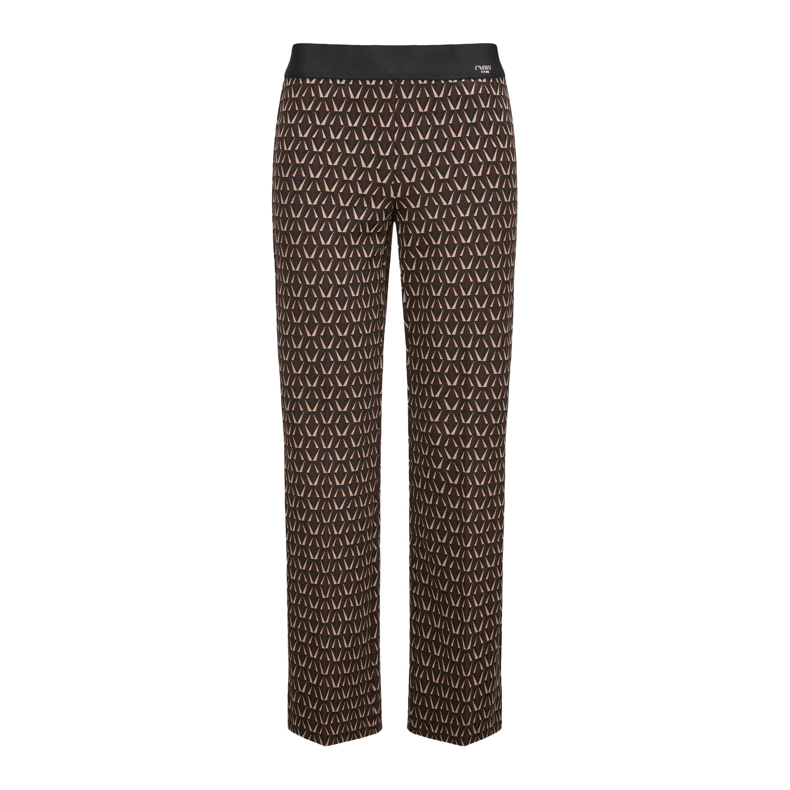 Slim fit flared broek van Cambio, model Faith. Deze relaxte broek is gemaakt van een jersey stretch stof met een motief. De broek heeft een elastische tailleband en uitlopende broekspijpen.