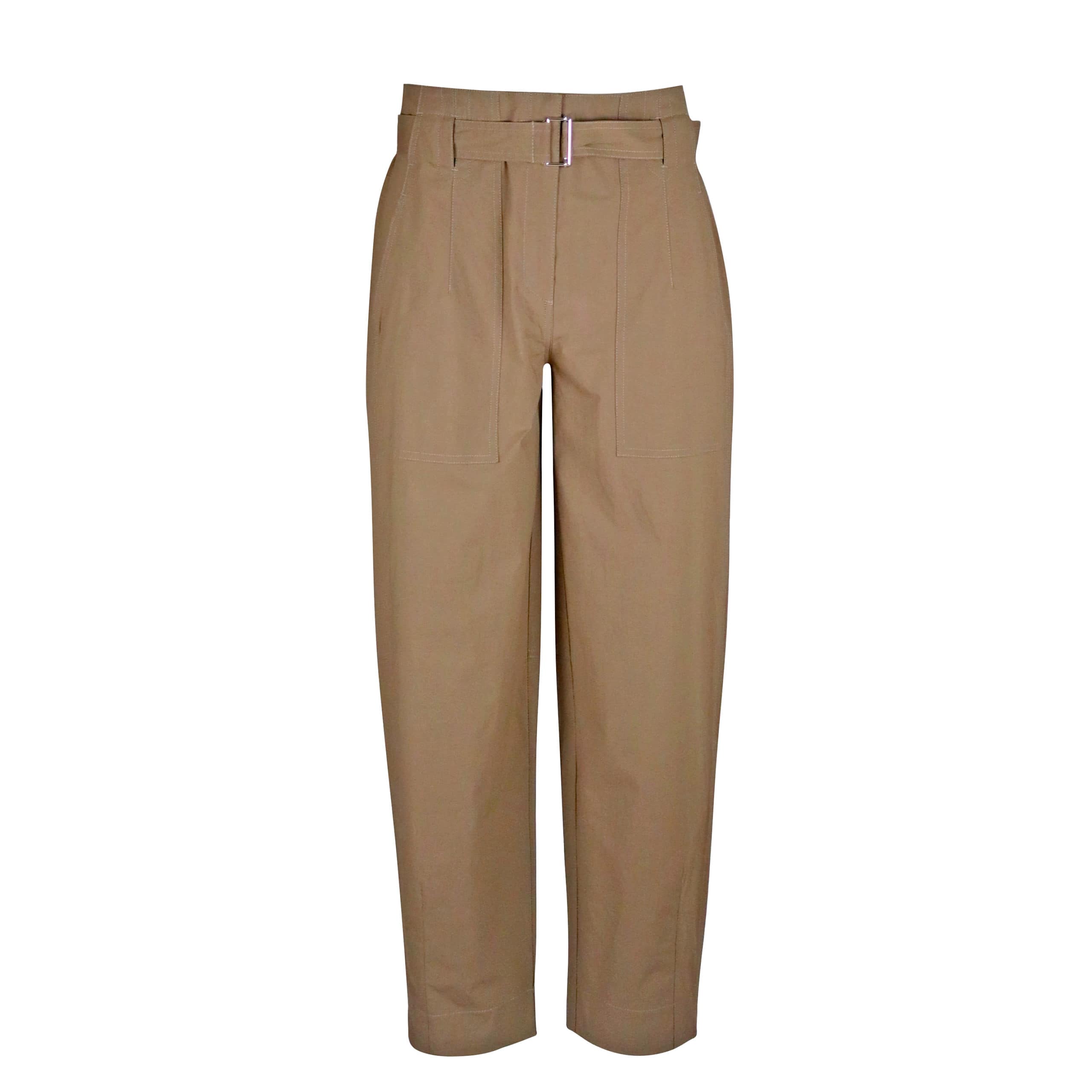 7/8 relaxte broek van Cambio, model Karolina. Deze pantalon is gemaakt van een dunne katoenen stof. De broek heeft een hoge taille, rechte broekpijpen en twee grote steekzakken aan de voorzijde. De broek sluit met een haakje, knoop- en ritsluiting, heeft aan de achterzijde twee sier paspelzakken en komt met een bijpassende ceintuur.