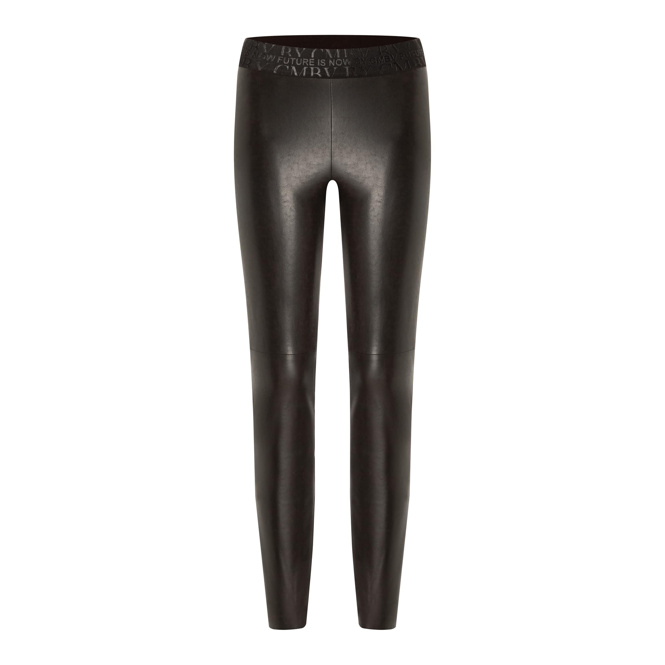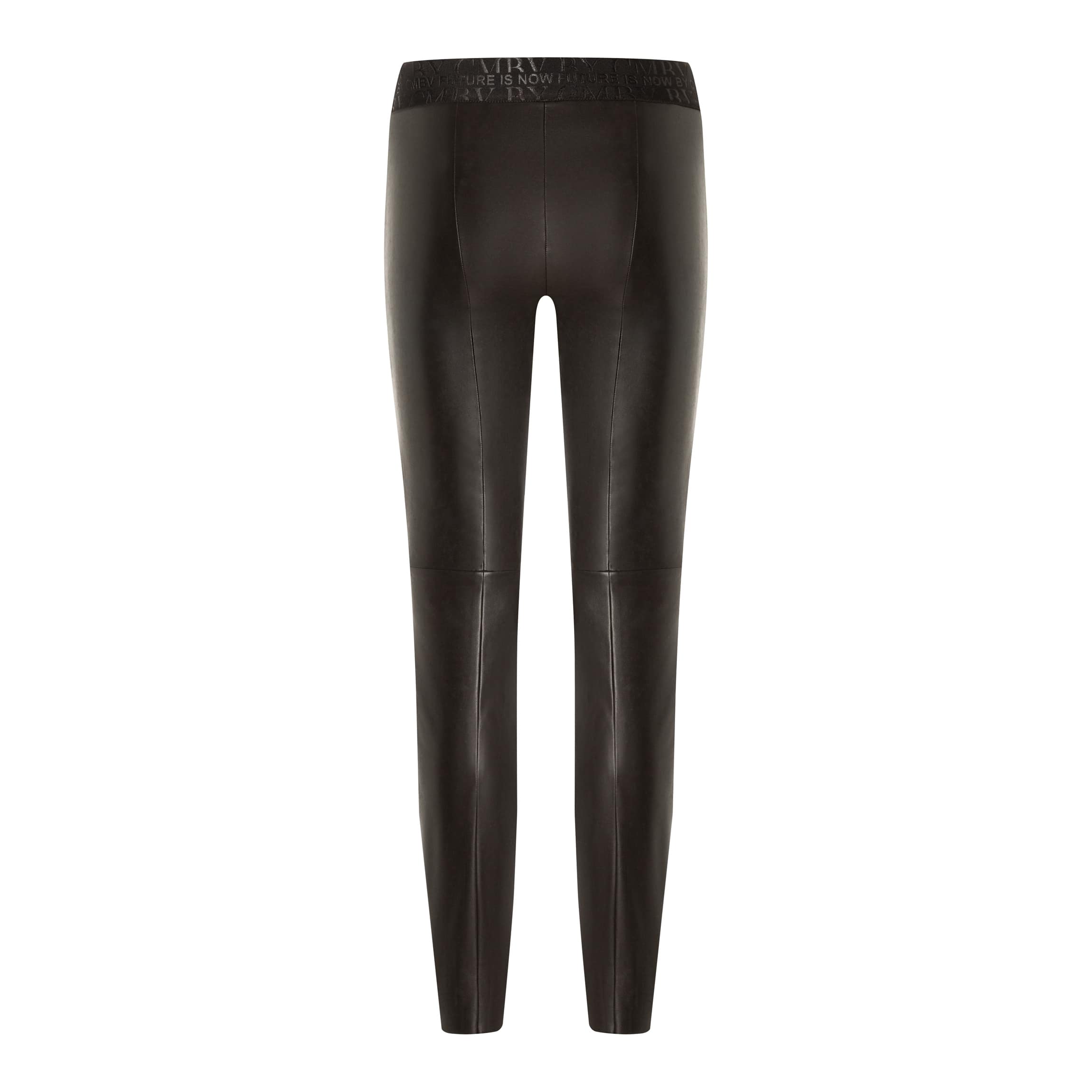 Skinny pantalon van Cambio, model Randa. De faux leather broek heeft een elastische tailleband en aansluitende pasvorm. De broek is gemaakt van een donkerbruine stretch stof.