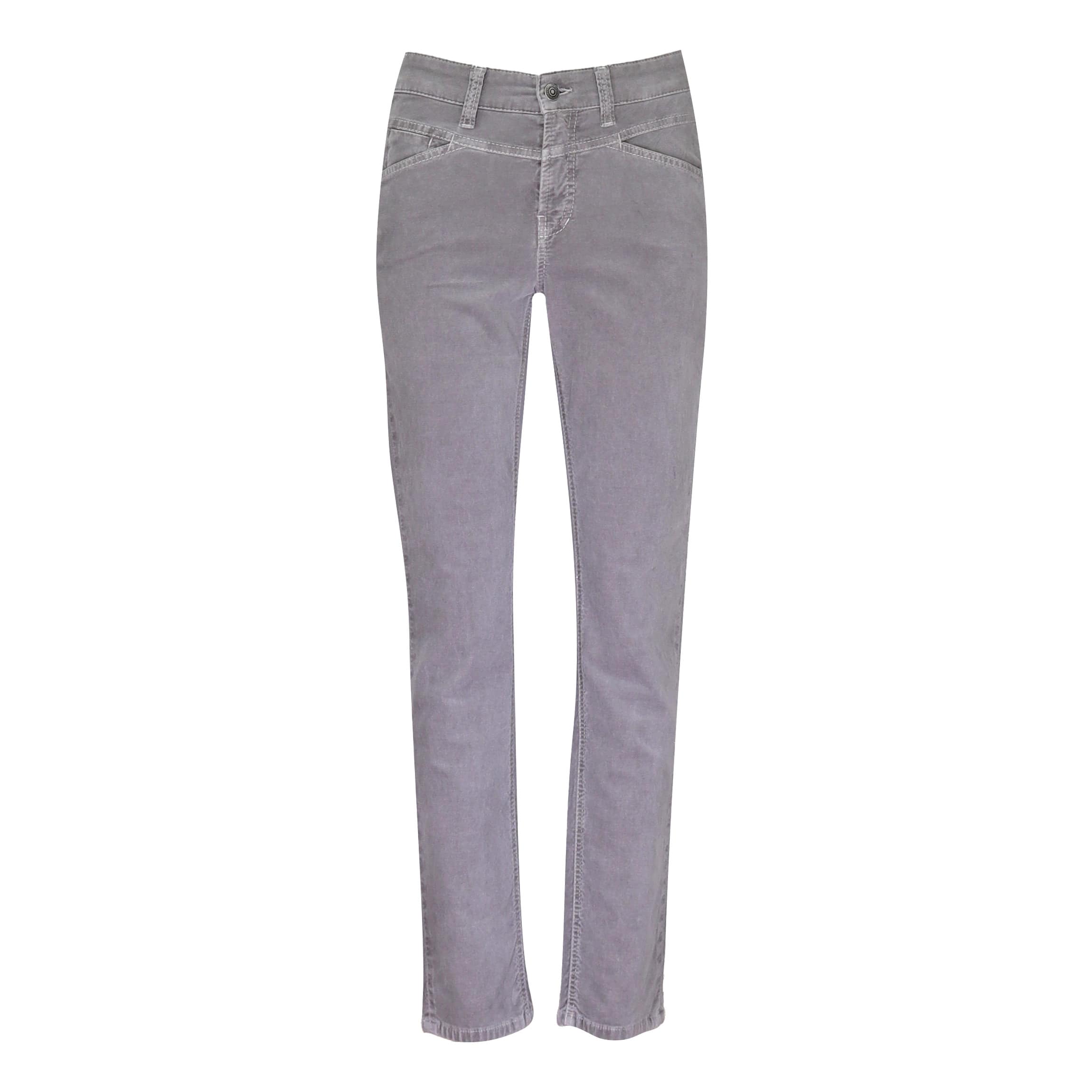Slim fit broek van Cambio, model Posh. Deze grijze velvet broek is gemaakt van fluwelen stretch stof en heeft een slim fit pasvorm met een modern medium fit taille. De jeans heeft aan de voorzijde twee steekzakken en twee achterzakken.