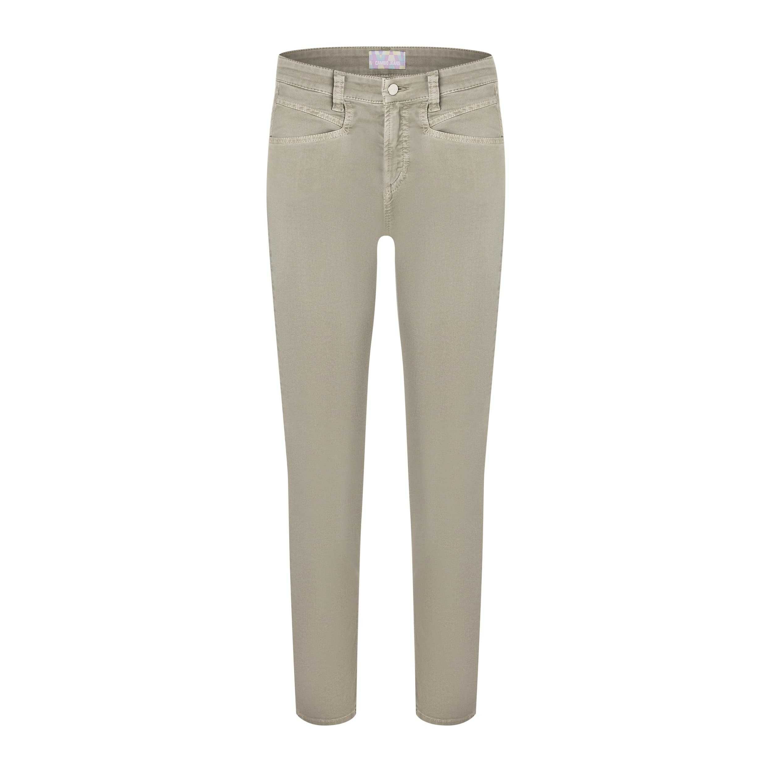 Slim fit pantalon van Cambio, model Pina Seam. Deze kaki broek heeft een rechte pasvorm met een medium taille. De katoenen pantalon sluit met een knoop- en ritssluiting, heeft twee steekzakken en twee achterzakken.