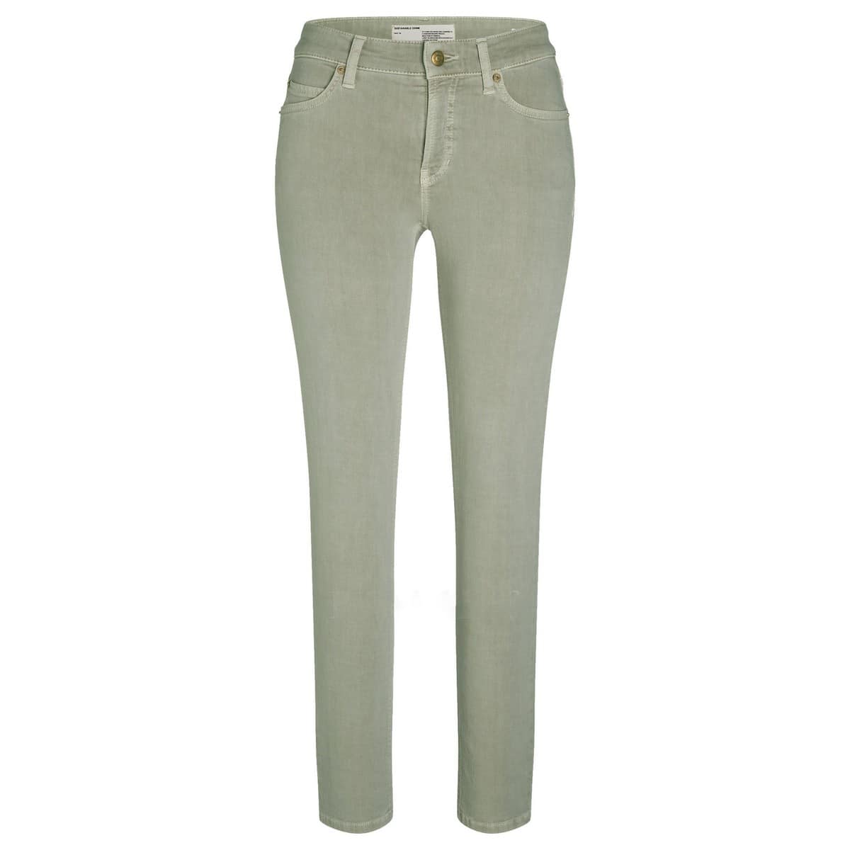Kaki jeans met een aansluitende pasvorm van Cambio, model Paris Ancle Cut. Deze broek heeft een medium taille, kaki kleur en valt tot boven de enkel. Aan de voorzijde zitten twee steekzakken met aan de achterzijde twee achterzakken.