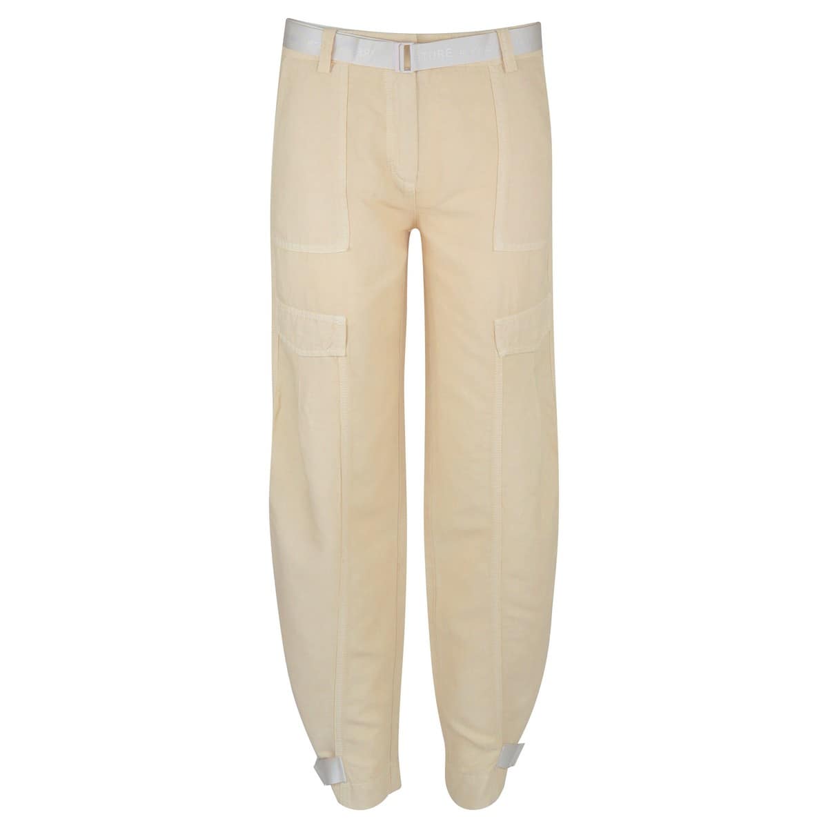 Relaxte broek van Cambio, model Kathie. Deze licht beige broek heeft een rechte losse pasvorm en sluit met een haakje, knoop- en ritssluiting. De broek heeft aan de voorzijde twee schuine steekzakken en twee decoratieve klepzakken. Aan de achterzijde heeft de broek twee sierpaspelzakken. Aan de onderzijde van de broekspijpen kun je zelf bepalen hoe strak of losjes de zoom draagt. De bijpassende ceintuur hoort bij de broek.