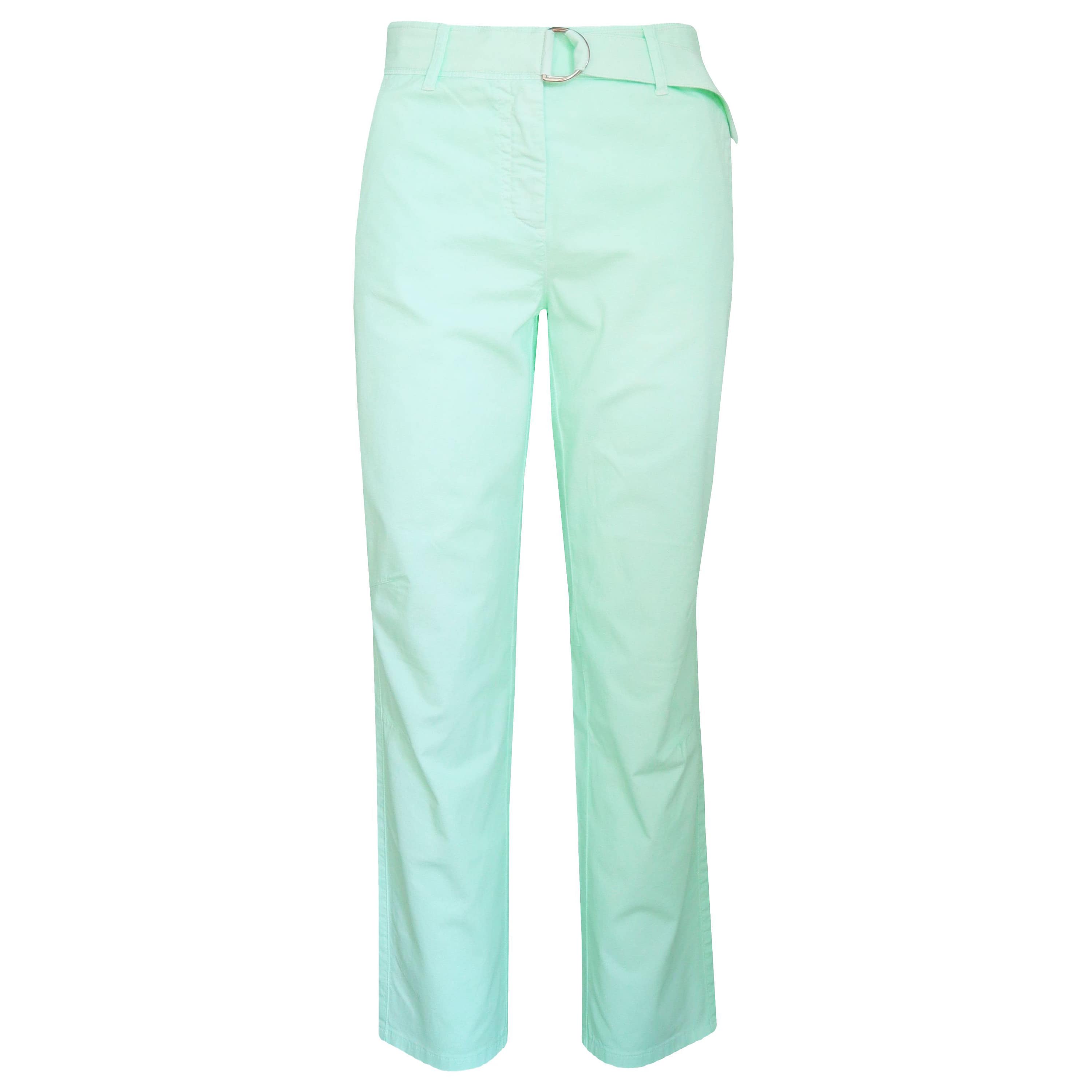 Pastel groene broek van Cambio. Deze broek heeft een relaxte pasvorm met een medium taille en licht toelopende broekspijpen. De pantalon heeft twee steekzakken aan de voorzijde en twee sier paspelzakken aan de achterzijde. Aan de voorzijde heeft deze broek een vaste ceintuur en sluit met haakjes, knoop- en ritssluiting.