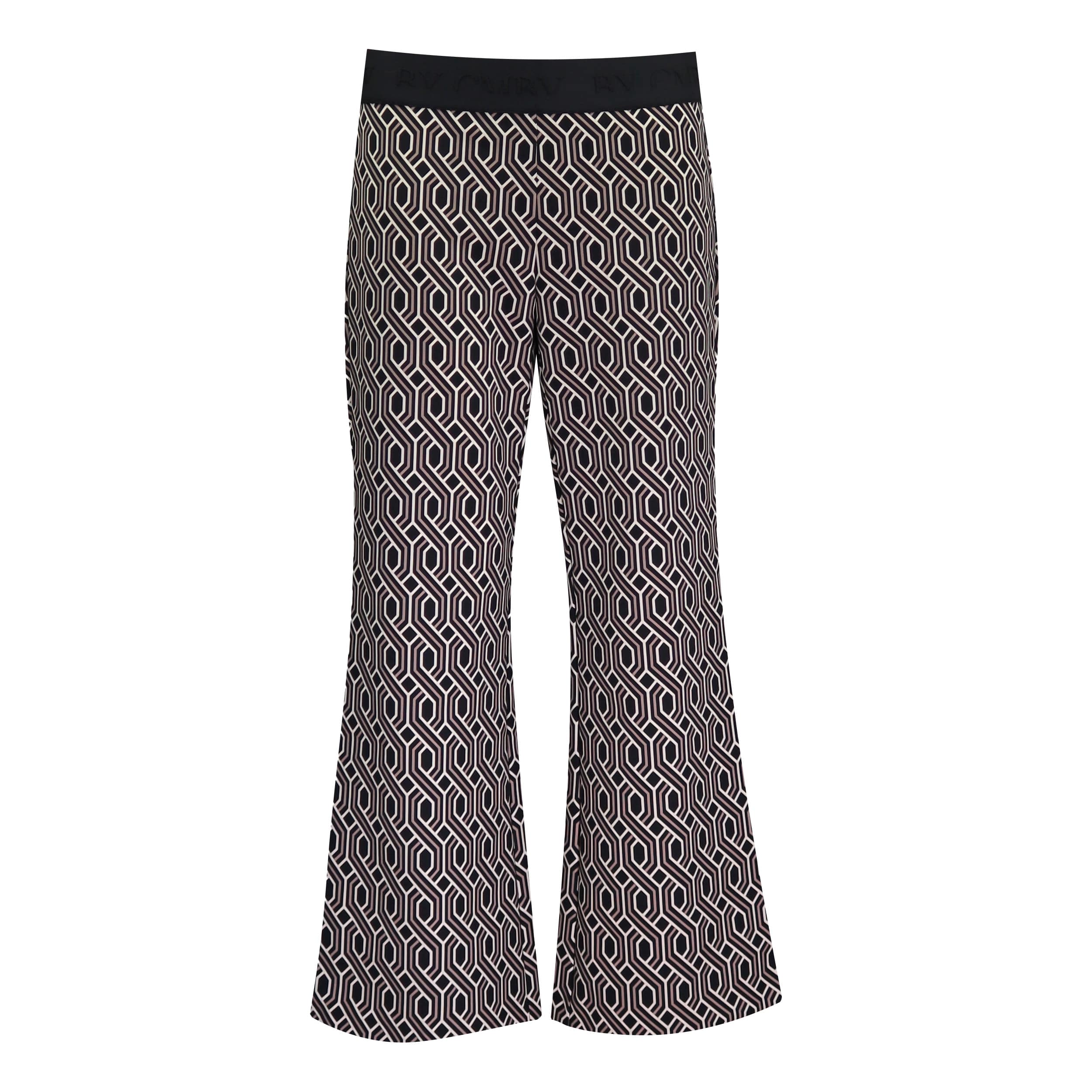 Slim fit flared broek van Cambio, model Faith. Deze relaxte broek is gemaakt van een gladde stretch stof met een motief. De broek heeft een elastische tailleband en uitlopende broekspijpen met een vaste naad aan de voorzijde.