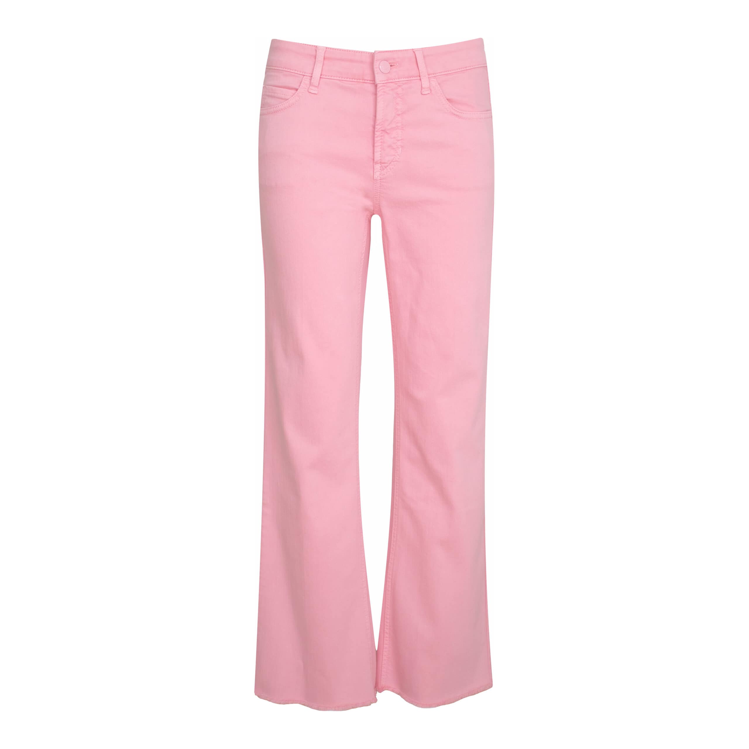 Roze jeans van Cambio, model Francesca. Deze broek is gemaakt van stretch denim en heeft rechte broekspijpen met een fijn gerafelde zoom. De broek sluit met een knoop- en ritssluiting, heeft twee steekzakken en twee achterzakken.