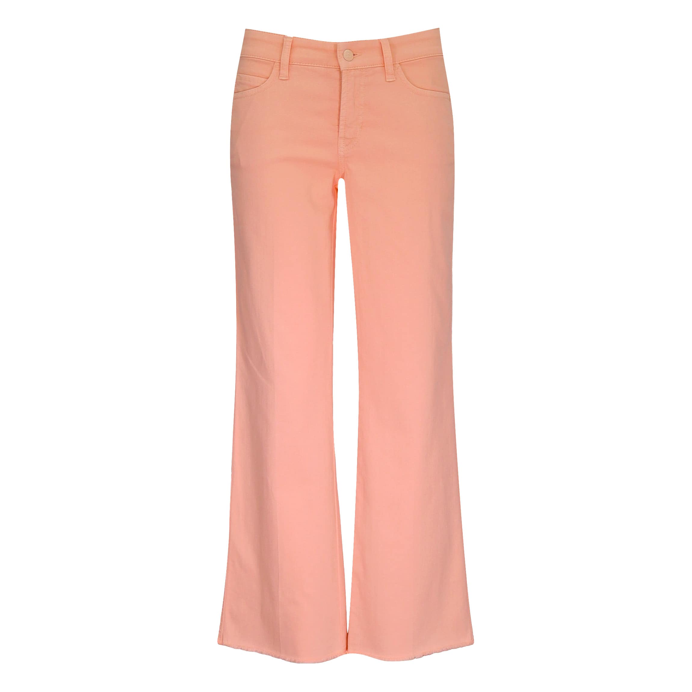 Oranje roze jeans van Cambio. Deze broek is gemaakt van een effen oranje roze denim stretch stof en heeft een rechte pasvorm. De jeans sluit met een knoop- en ritssluiting, heeft een normale taille, twee steekzakken en twee achterzakken.