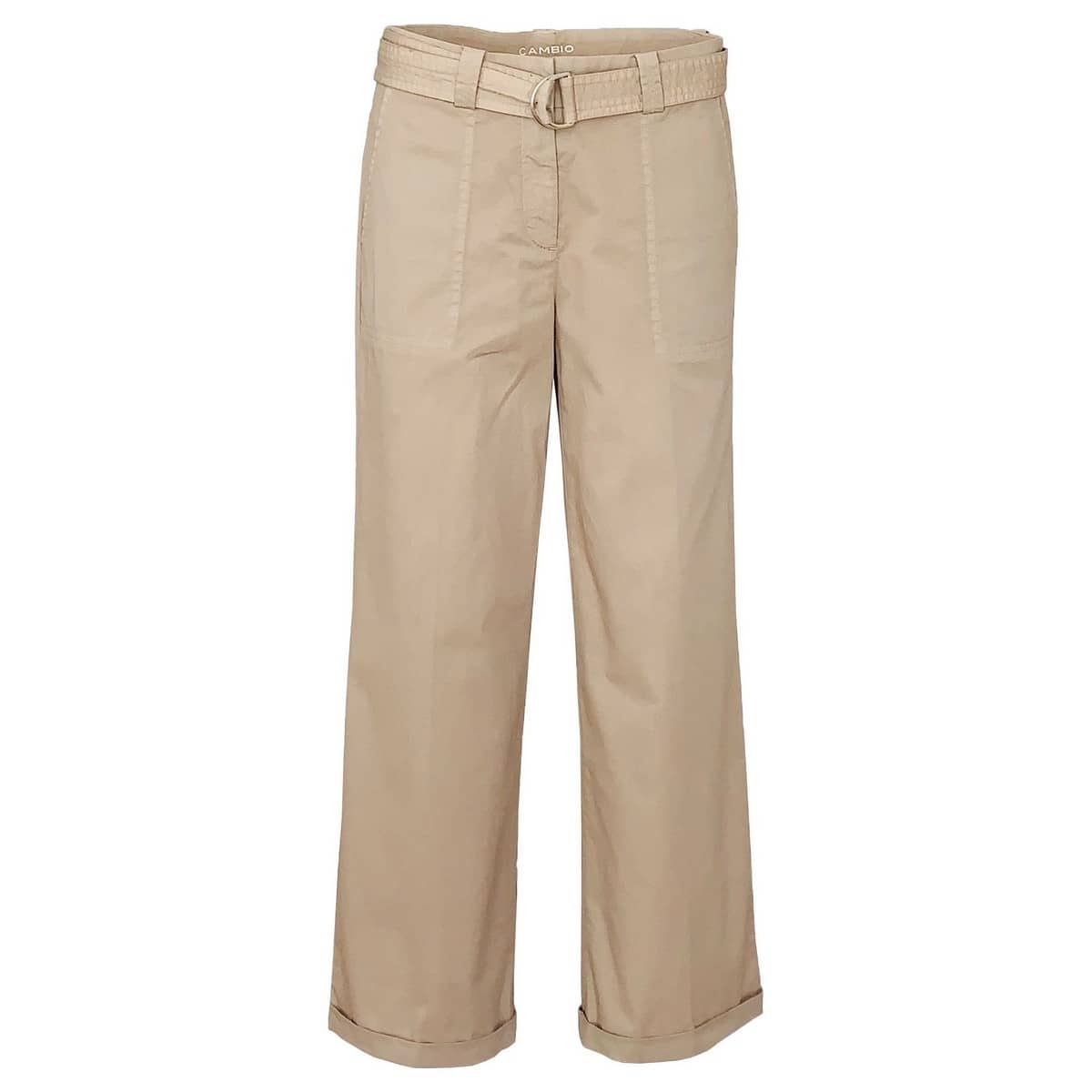 Katoenen pantalon van Cambio. Deze broek is gemaakt van een katoenen stof met stretch en heeft een bijpassende ceintuur. De pantalon heeft aan de voorzijde twee steekzakken en aan de achterzijde twee sier paspelzakjes. Dit rechte model heeft een regular taille en rechte broekspijpen.