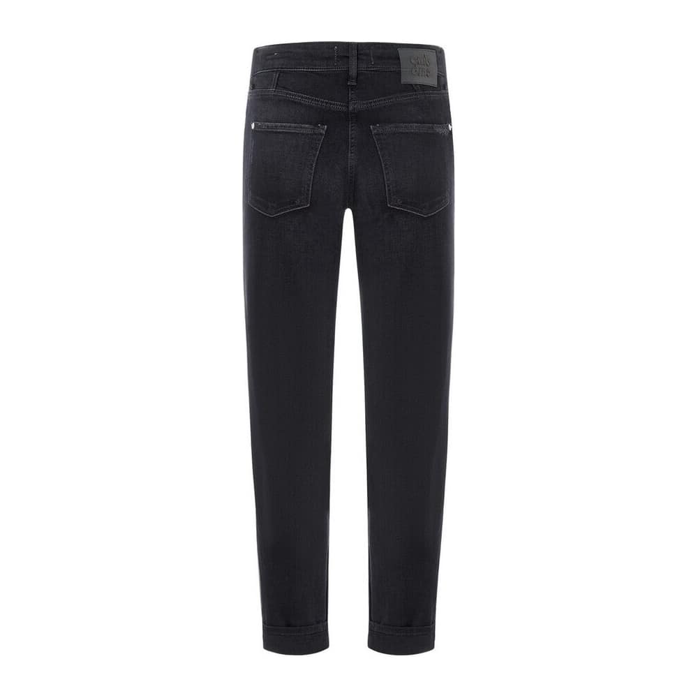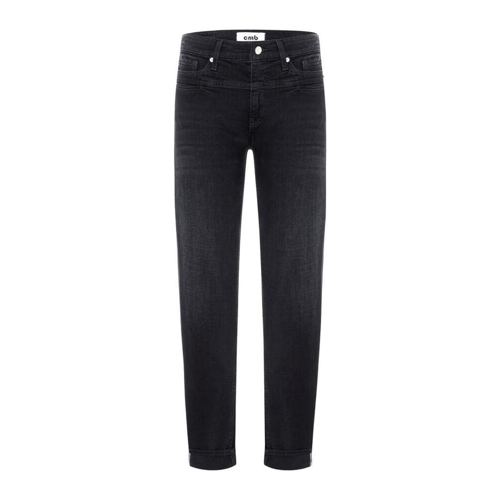 Slim fit jeans van Cambio, model Pearlie in lefthand black used. Deze jeans is gemaakt van stretch denim en heeft een normale taille. De broek sluit met een knoop- en ritssluiting en heeft twee steekzakken voor en twee achterzakken.
