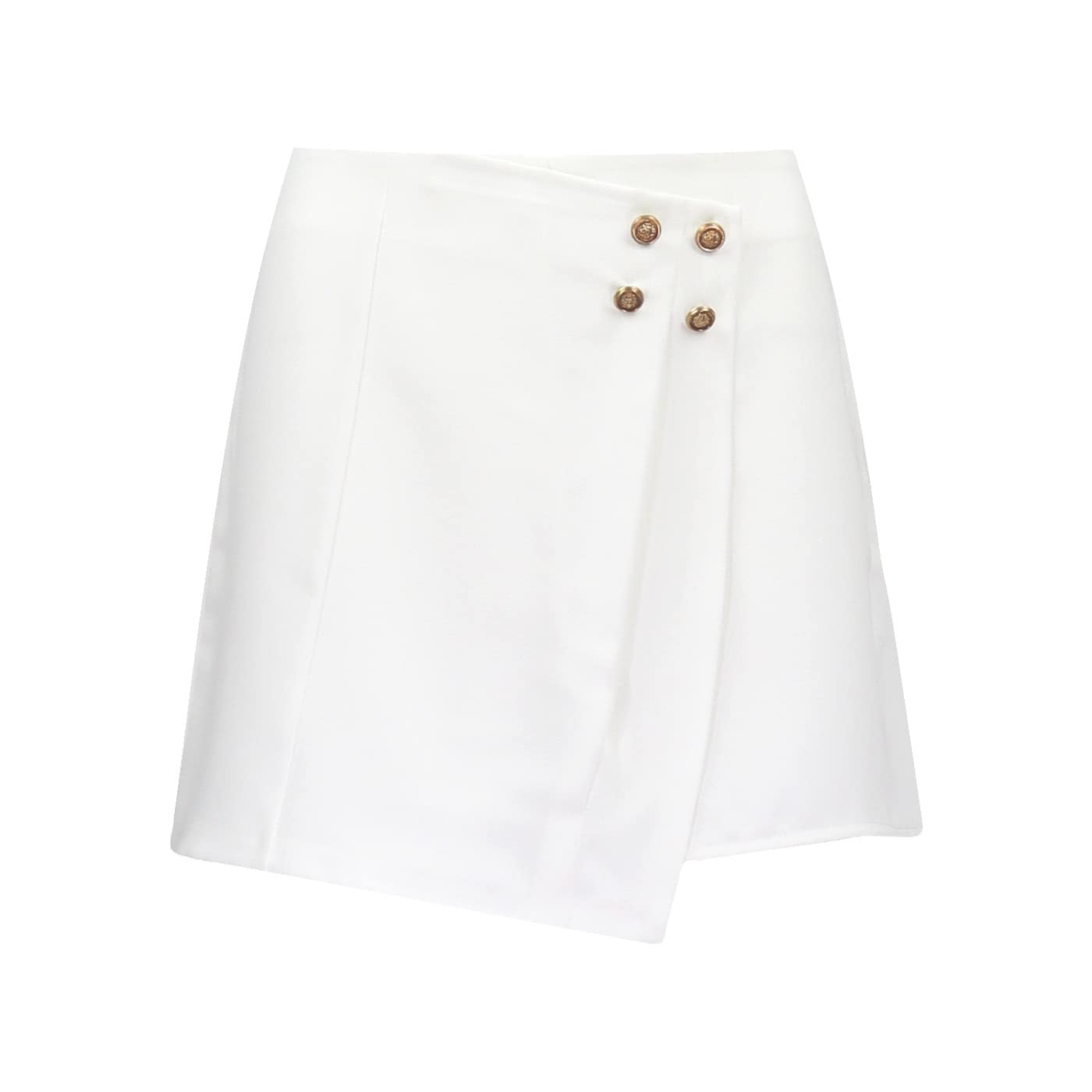 Ecru shorts van Explosion. Deze shorts heeft aan de voorzijde een overslag met vier kleine goudkleurige knopen. De shorts sluit met een verborgen ritssluiting aan de zijkant van de korte broek.