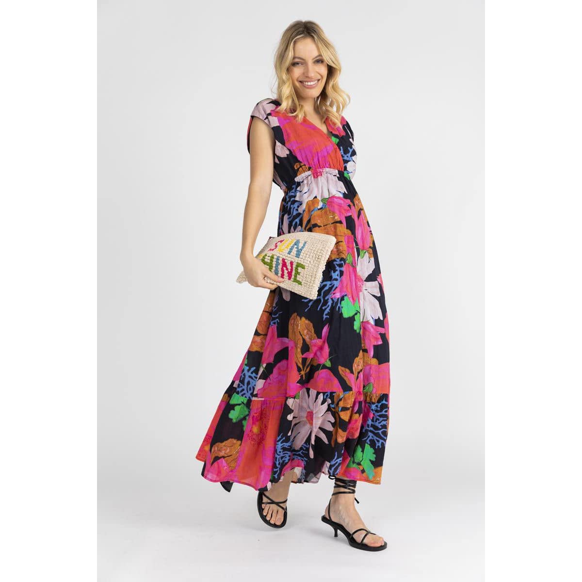 Frogbox • zwarte maxi jurk met bloemen