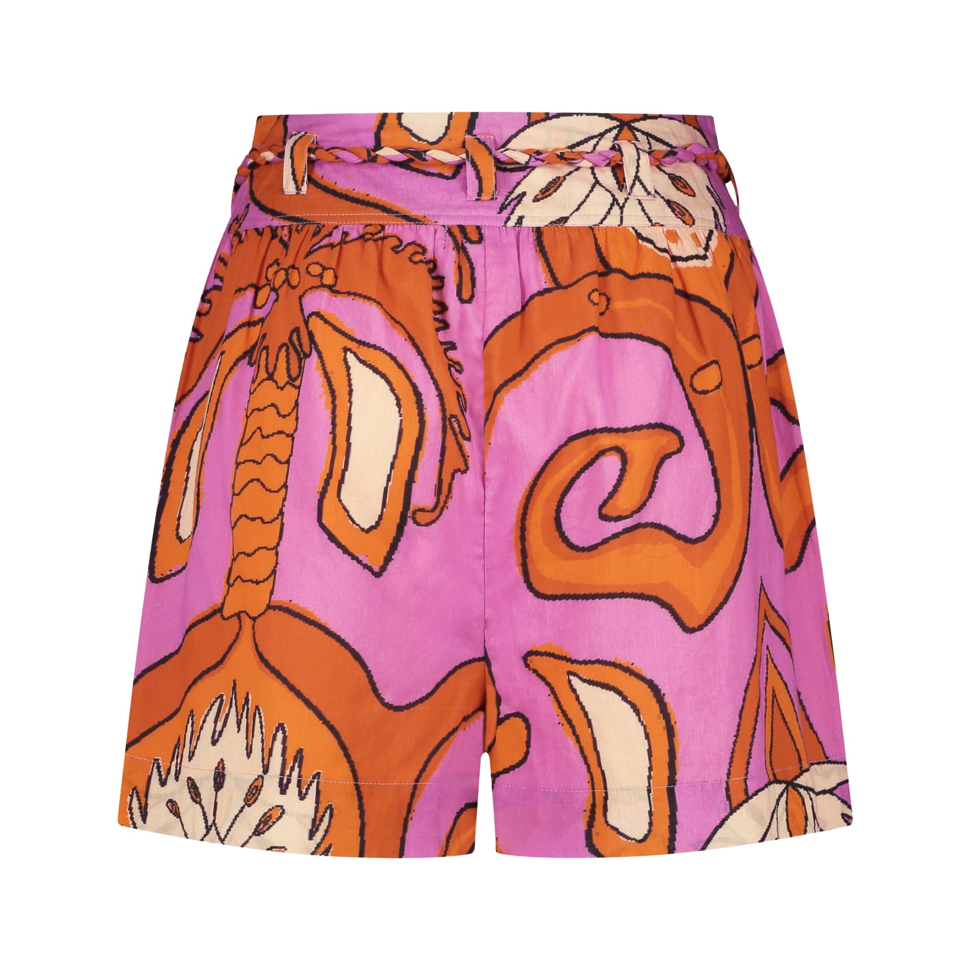 Kleurrijke short van Ibana, model Sizana in amalfi. Deze korte broek is gemaakt van 100% katoen en heeft een hoge taille met een bijpassend koord. De short sluit met een verborgen ritssluiting aan de zijkant, heeft twee steekzakken en een relaxte pasvorm.