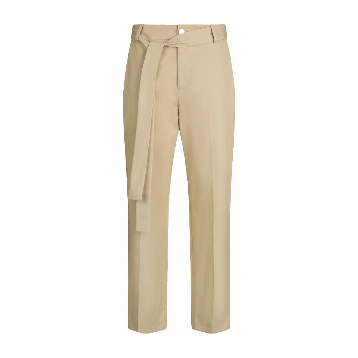 Beige chino van Liu Jo, model pant. chino military in noisette. Deze pantalon is gemaakt van een katoen met lyocell mix, heeft een hoge taille en slim fit pasvorm. De broek sluit met een knoop- en ritssluiting, heeft twee steekzakken, twee sier paspelzakjes, aan de achterzijde een elastische taille en een bijpassend lint.