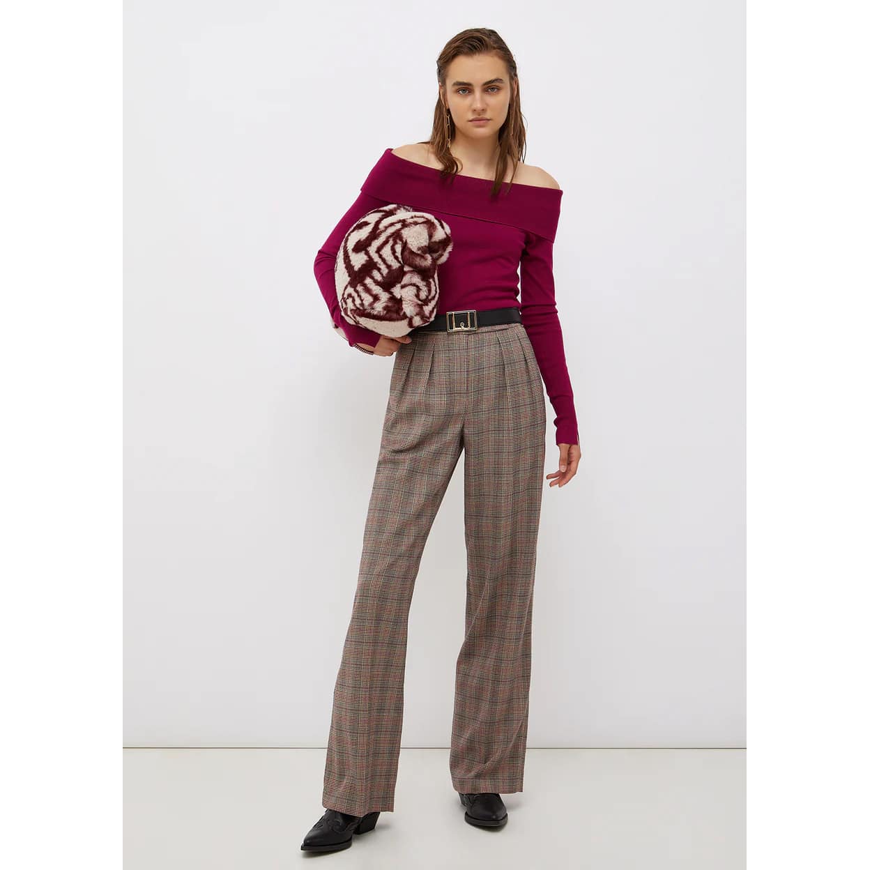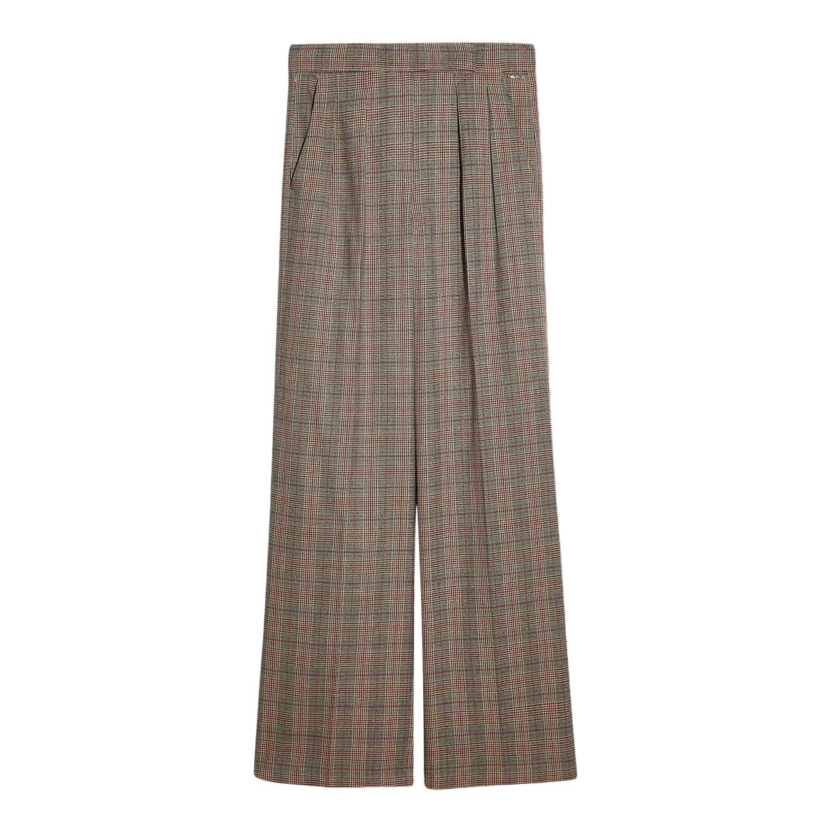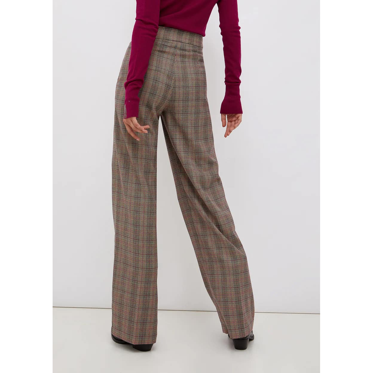 Geruite palazzo pantalon van Liu Jo. Deze pantalon heeft wijde broekspijpen met een geruit motief in zwart, wit, bruin en fuchsia met een hoge taille. De pantalon sluit met haakjes, knoop- en ritssluiting en heeft twee steekzakken.