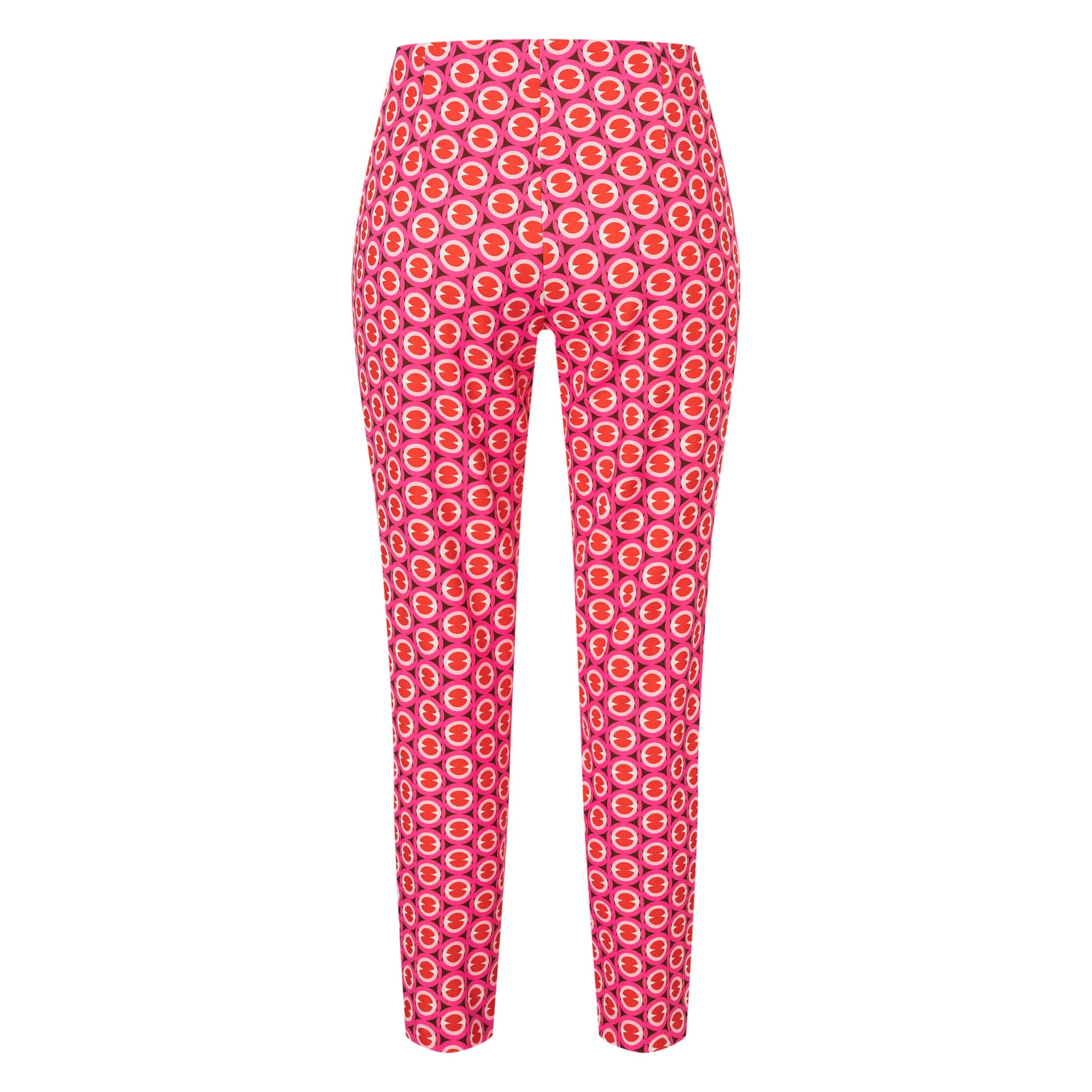 Pantalon van MAC, model Anna. Deze slim fit broek is gemaakt van een gladde stof, heeft toelopende pijpen, een elastische taille en valt boven de enkels. De broek sluit met een knoop- en ritssluiting en aan de voorzijde loopt er een vaste naad.
