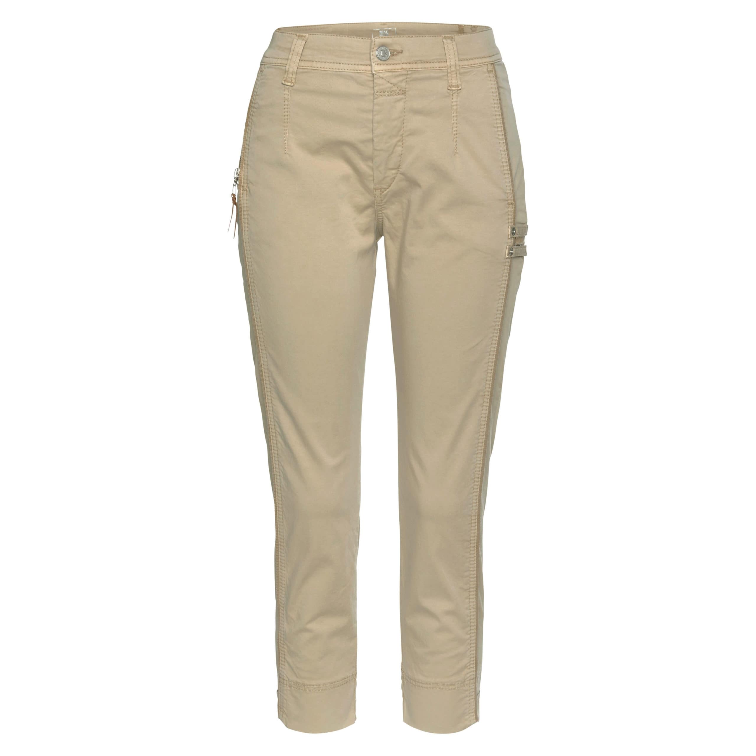 Relaxte broek van MAC, model Rich Active, relaxed slim fit tapered leg. Deze katoenen broek is gemaakt van stretch katoen en heeft een effen beige kleur. De broek heeft een relaxte slim fit pasvorm met aan de voorzijde twee steekzakken, twee achterzakken en sluit met een knoop- en ritssluiting.