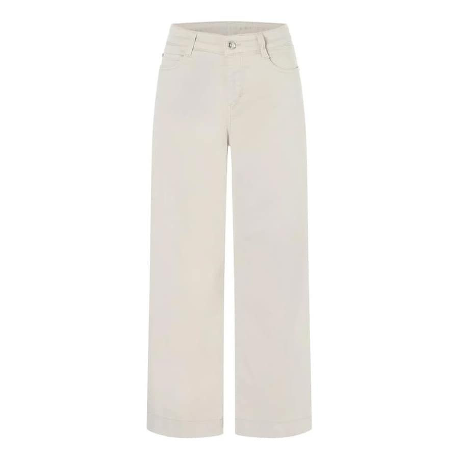 Beige jeans van MAC, model Dream Culotte. Deze denim broek is gemaakt van een katoenen stretch stof (wonderlight), heeft een 7/8 lengte met wijde pijpen en een normale taille. De broek sluit met een knoop- en ritssluiting en heeft twee steekzakken aan de voorzijde en twee achterzakken.