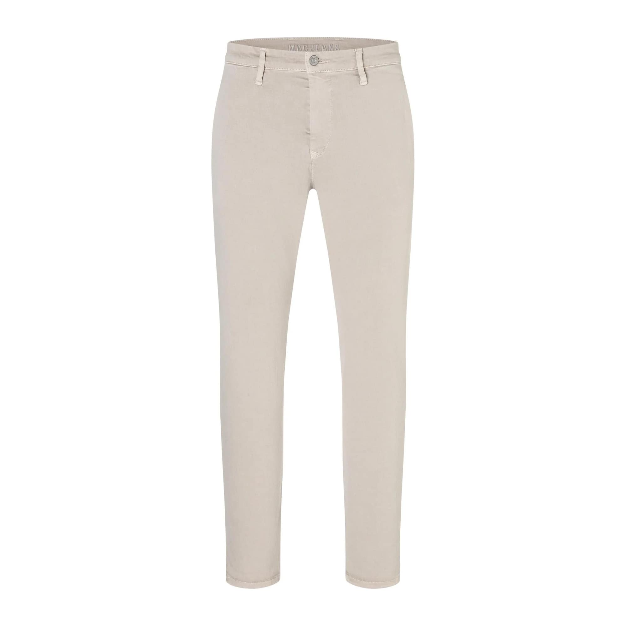 Beige jeans van MAC, model Driver Pants. Deze chino is gemaakt van een denim stretch stof en heeft een modern fit met een smaller toelopende broekspijp. De pantalon sluit met een knoop- en ritssluiting, heeft twee steekzakken en twee achterzakken.