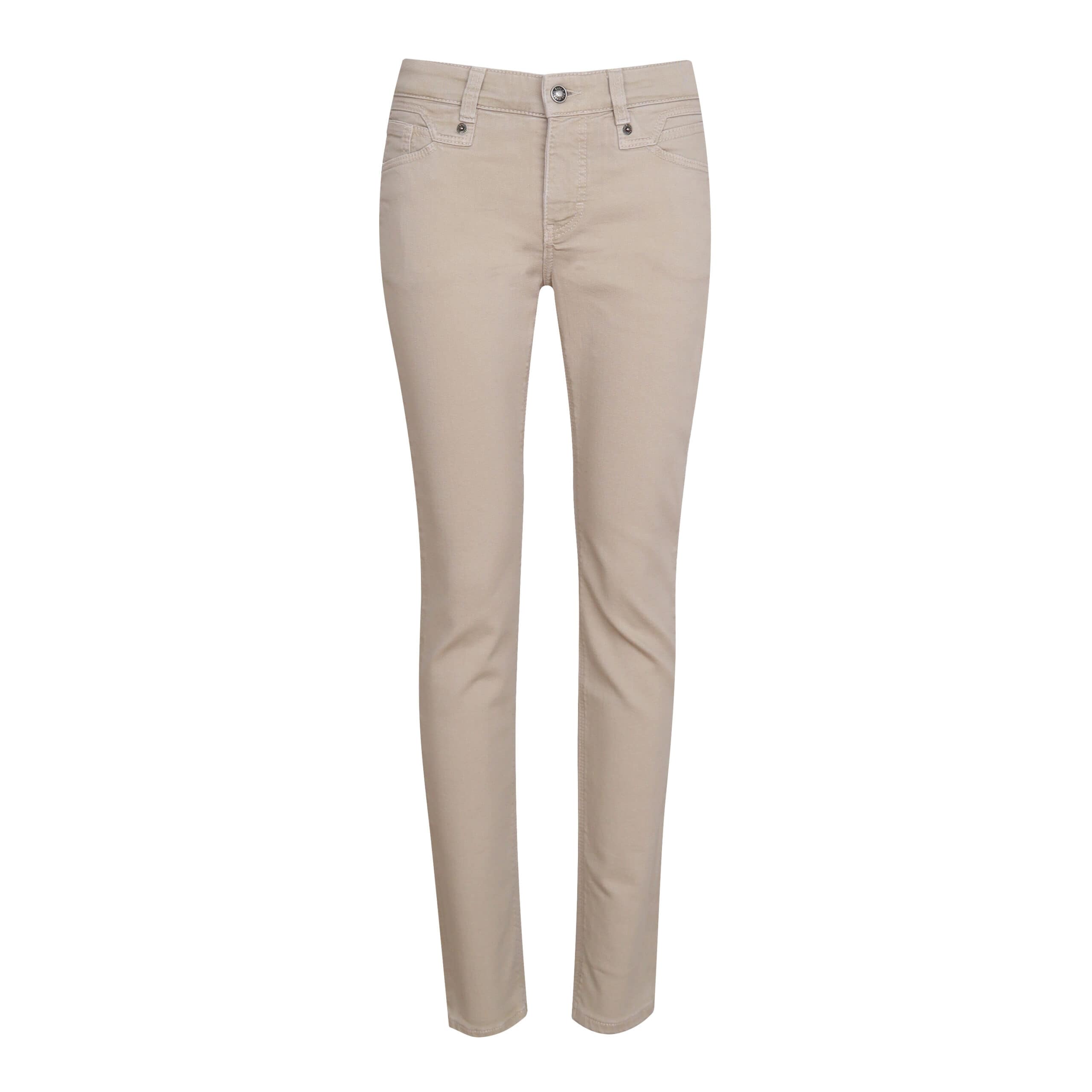 Beige jeans van MAC, model Rich Slim, straight fit, slim leg. Deze 7/8 denim broek heeft een slim fit pasvorm met twee steekzakken aan de voorzijde en twee achterzakken. De spijkerbroek is gemaakt van een beige denim stretch stof en sluit met een knoop- en ritssluiting.