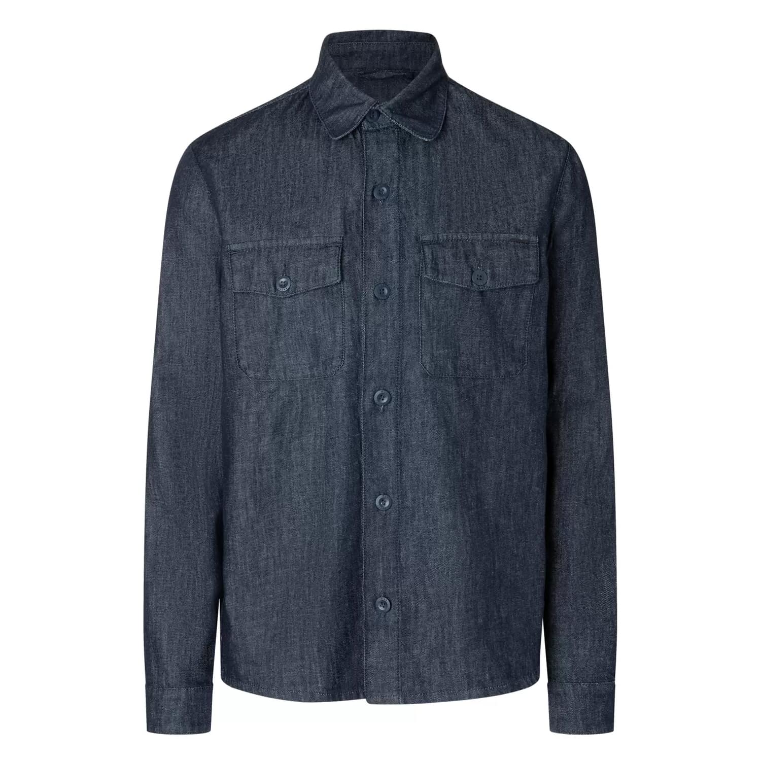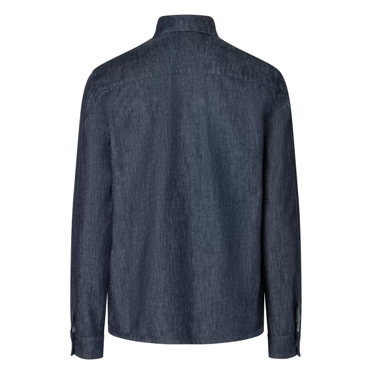 Blauw denim shirt van MAC, model Overshirt in rinsed deep blue. Deze blouse is gemaakt van denim, heeft een rechte, los vallende pasvorm en sluit met een knoopsluiting. Het shirt heeft twee klepzakjes, klassieke kraag, langen mouwen en kan als openvallende jasje gedragen worden.