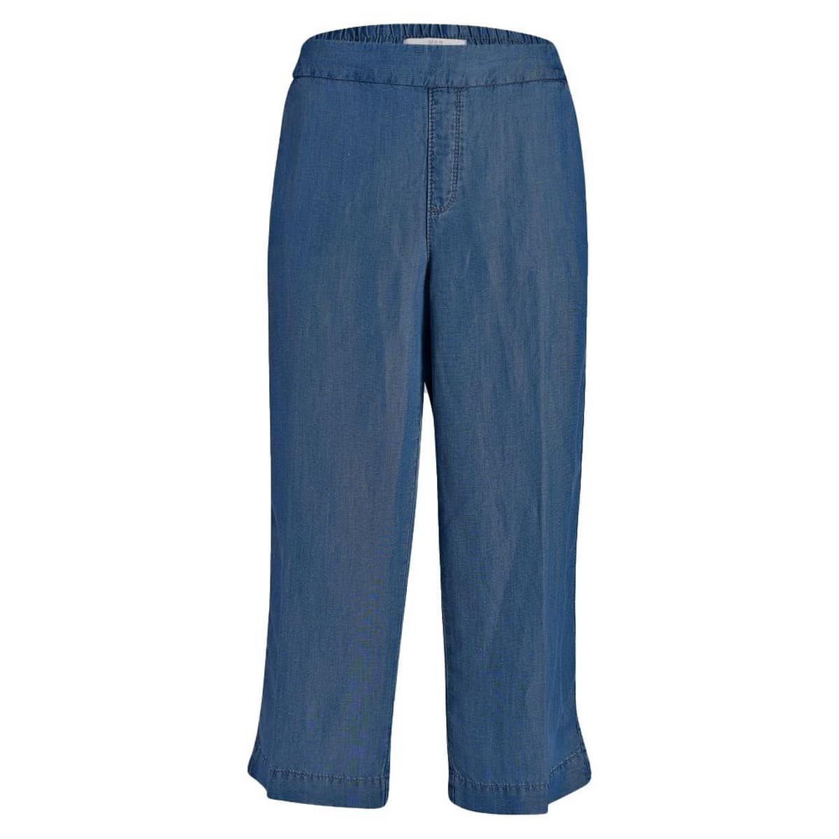 Blauwe broek van MAC, model Chiara cropped. Deze relaxte 7/8 broek is gemaakt van lyocell en heeft wijde broekspijpen. De losvallende broek heeft een elastische taille, twee steekzakken en sier paspelzakken.