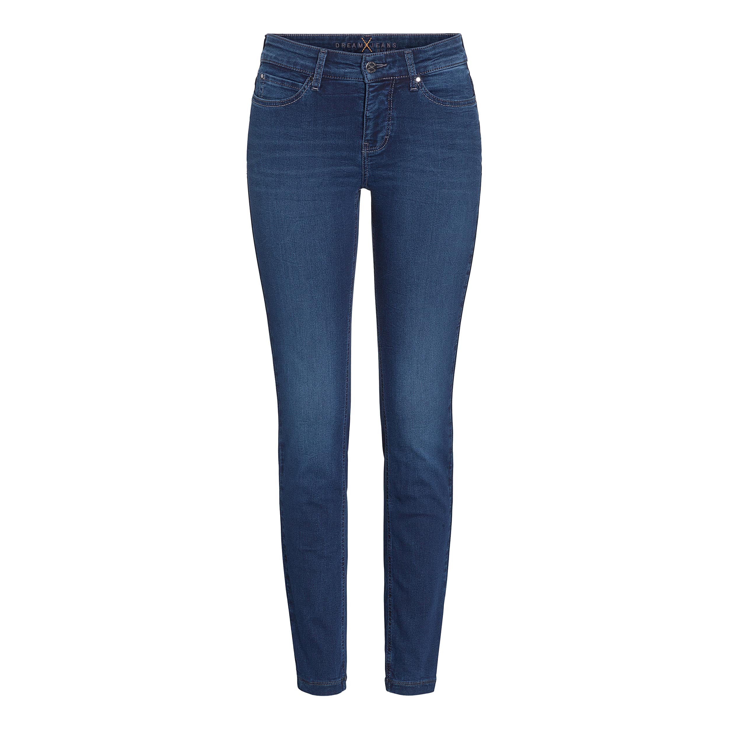 Blauwe jeans van MAC, model Dream Skinny, skinny leg in dark authentic. Deze denim broek heeft twee steekzakken aan de voorzijde, twee achterzakken en sluit met een knoop- en ritssluiting. De jeans is gemaakt van blauwe denim stretch stof en heeft een skinny pasvorm.
