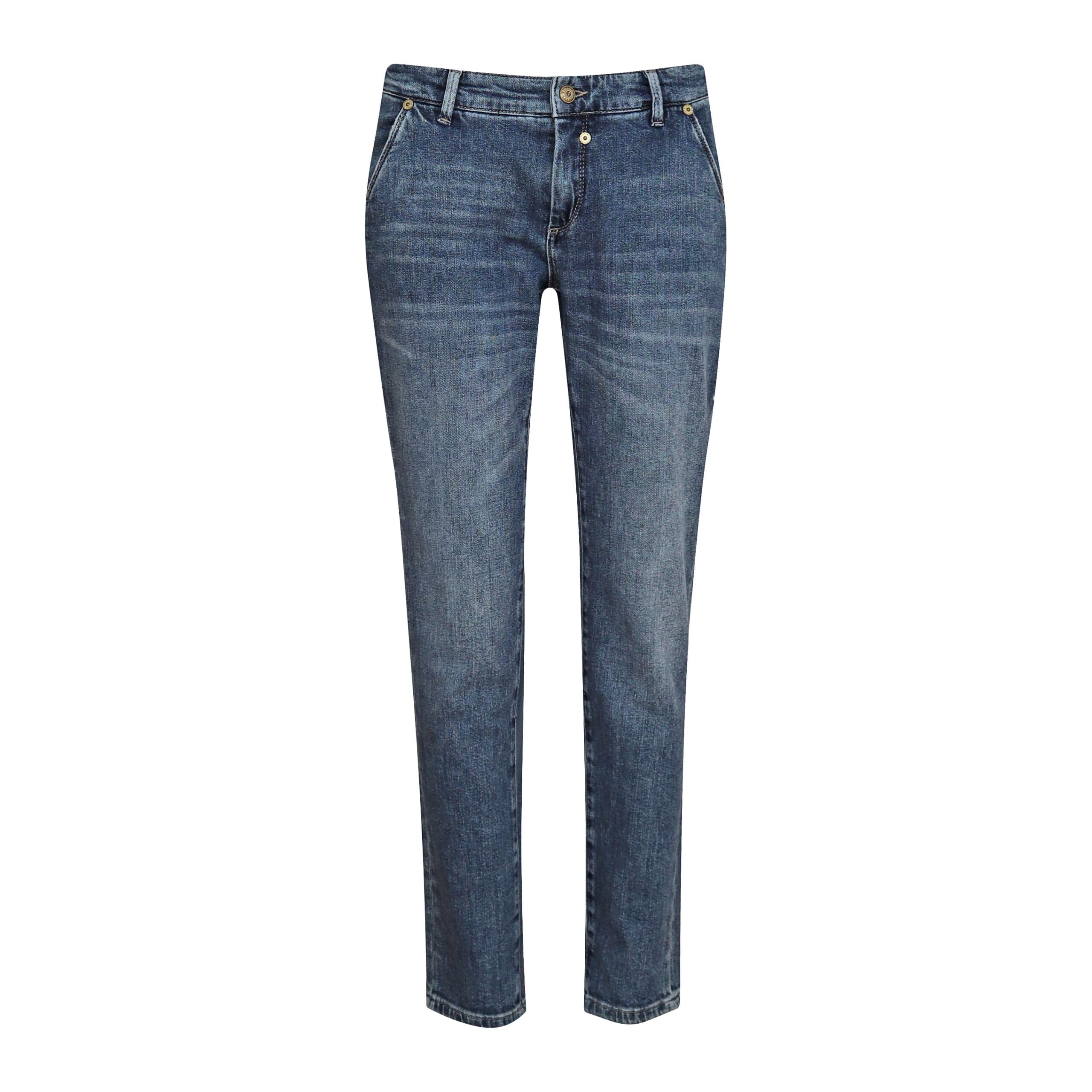 Chino jeans van MAC, model Montana Chino. Deze spijkerbroek is gemaakt van stretch denim en heeft rechte broekspijpen. De jeans sluit met een knoop- en ritssluiting, heeft een lagere taille en twee steekzakken en twee achterzakken.