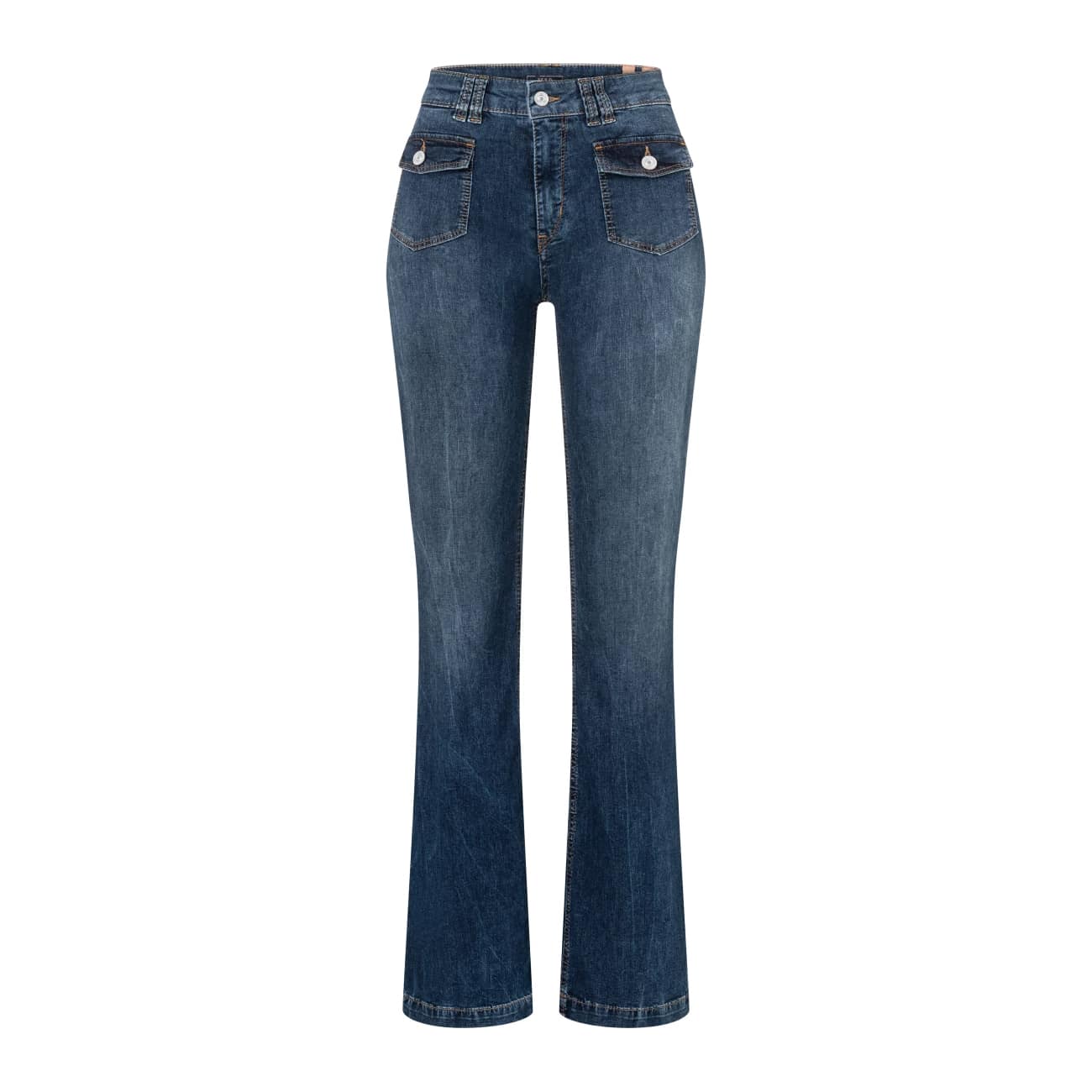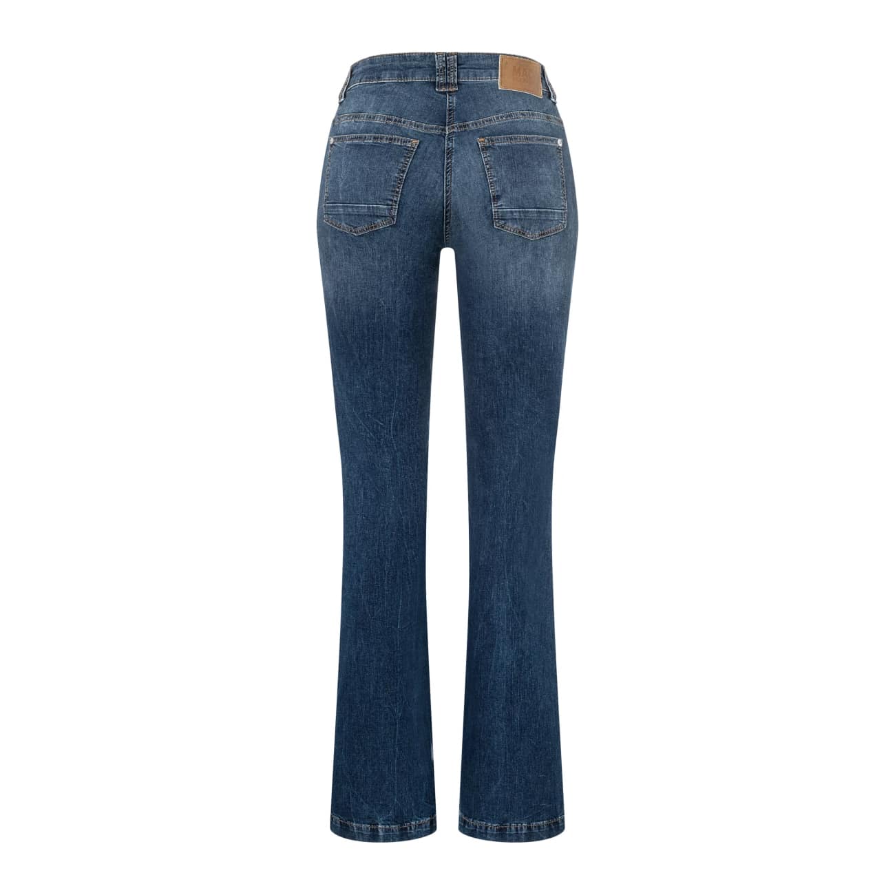 Blauwe jeans van MAC, model Rich Boot, slim fit, boot cut in night blue netwash. Deze broek is gemaakt van stretch denim, heeft een normale taille, slim fit pasvorm met uitlopende broekspijpen. De jeans sluit met een knoop- en ritssluiting, heeft twee pocketzakken aan de voorzijde en twee achterzakken.