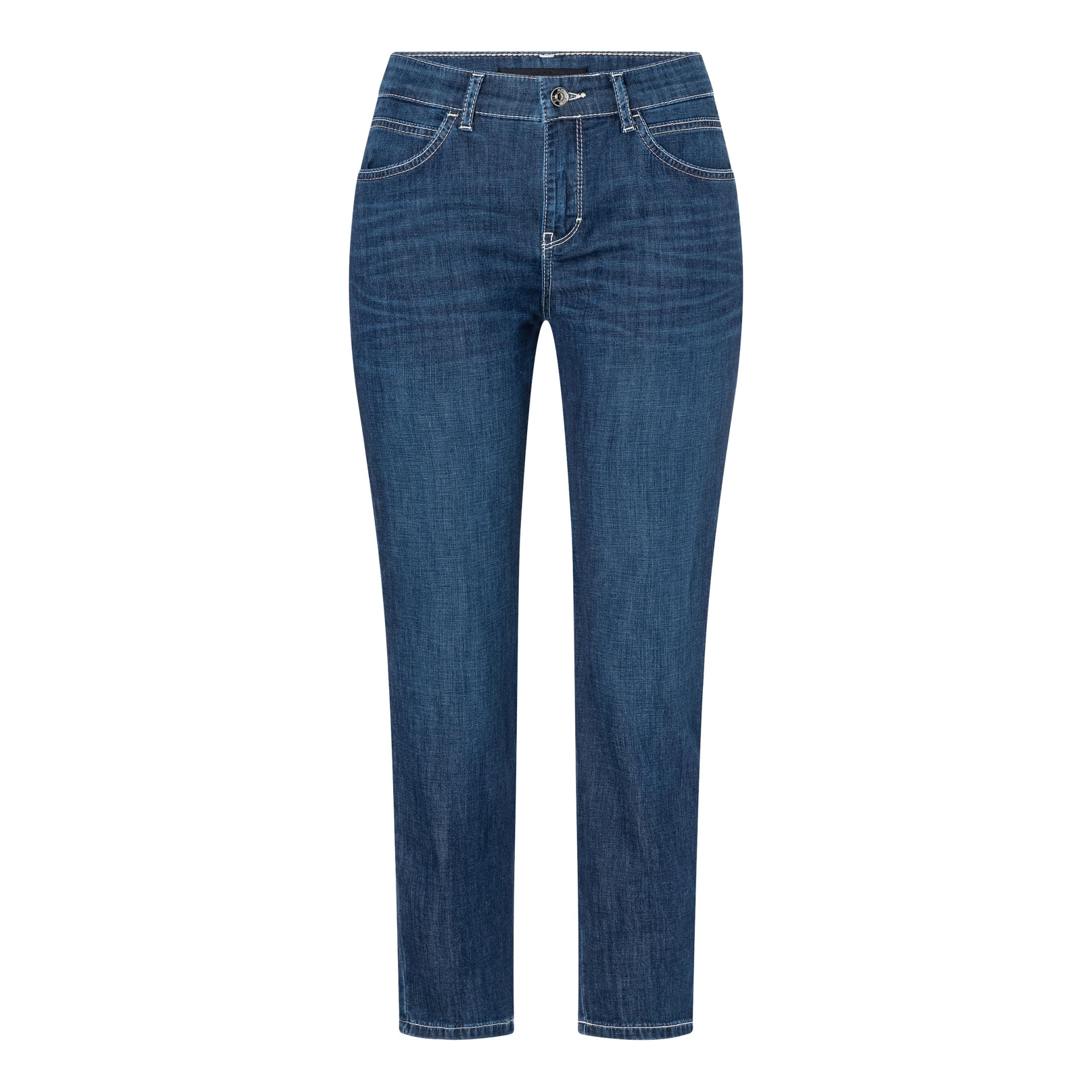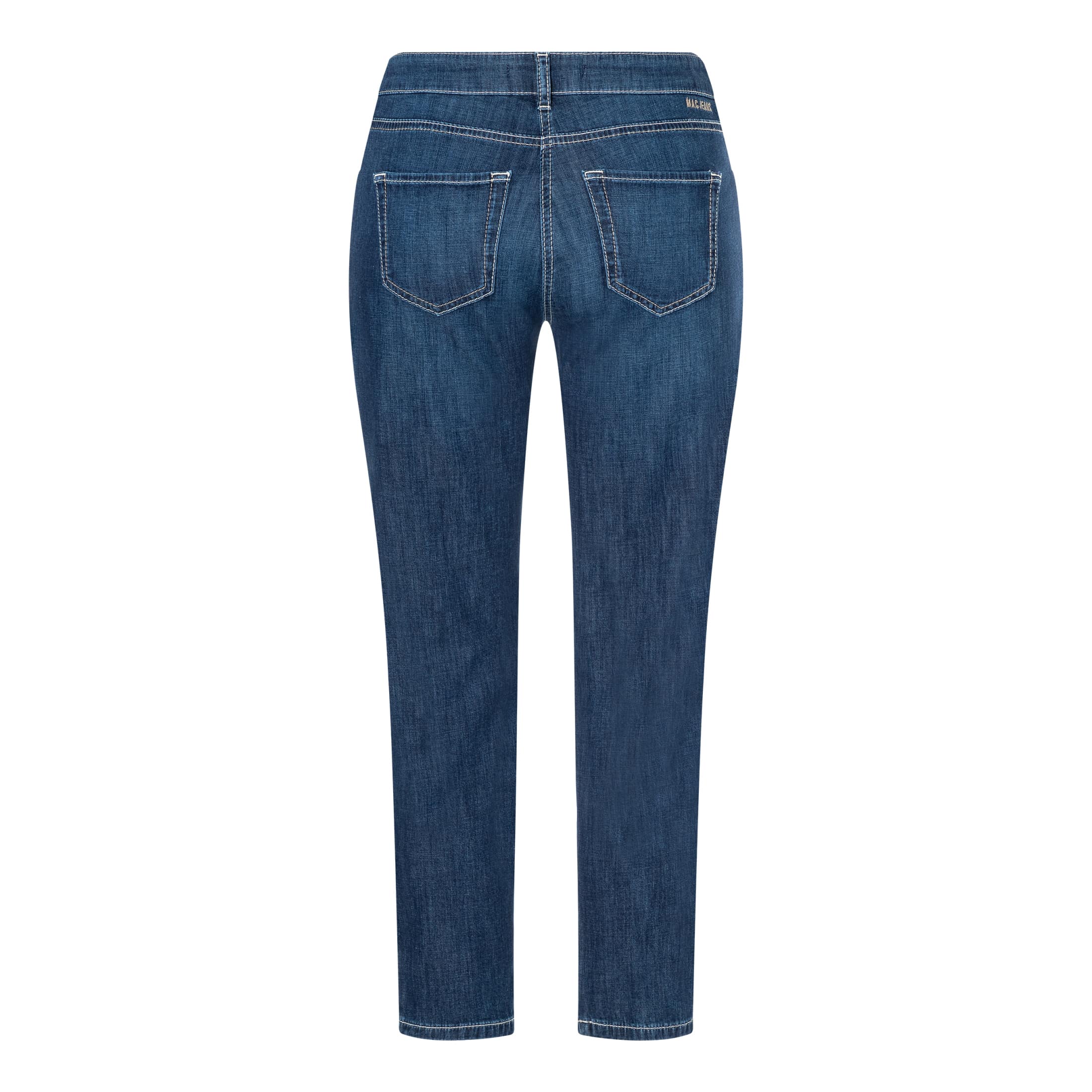 Slim fit jeans van MAC, model Slim 7/8, straight fit, slim leg. Deze jeans is gemaakt van een dunne stretch denim stof en heeft een normale taille met licht taps toelopende broekspijpen. De jeans sluit met een knoop- en ritssluiting en heeft twee steekzakken en twee achterzakken.