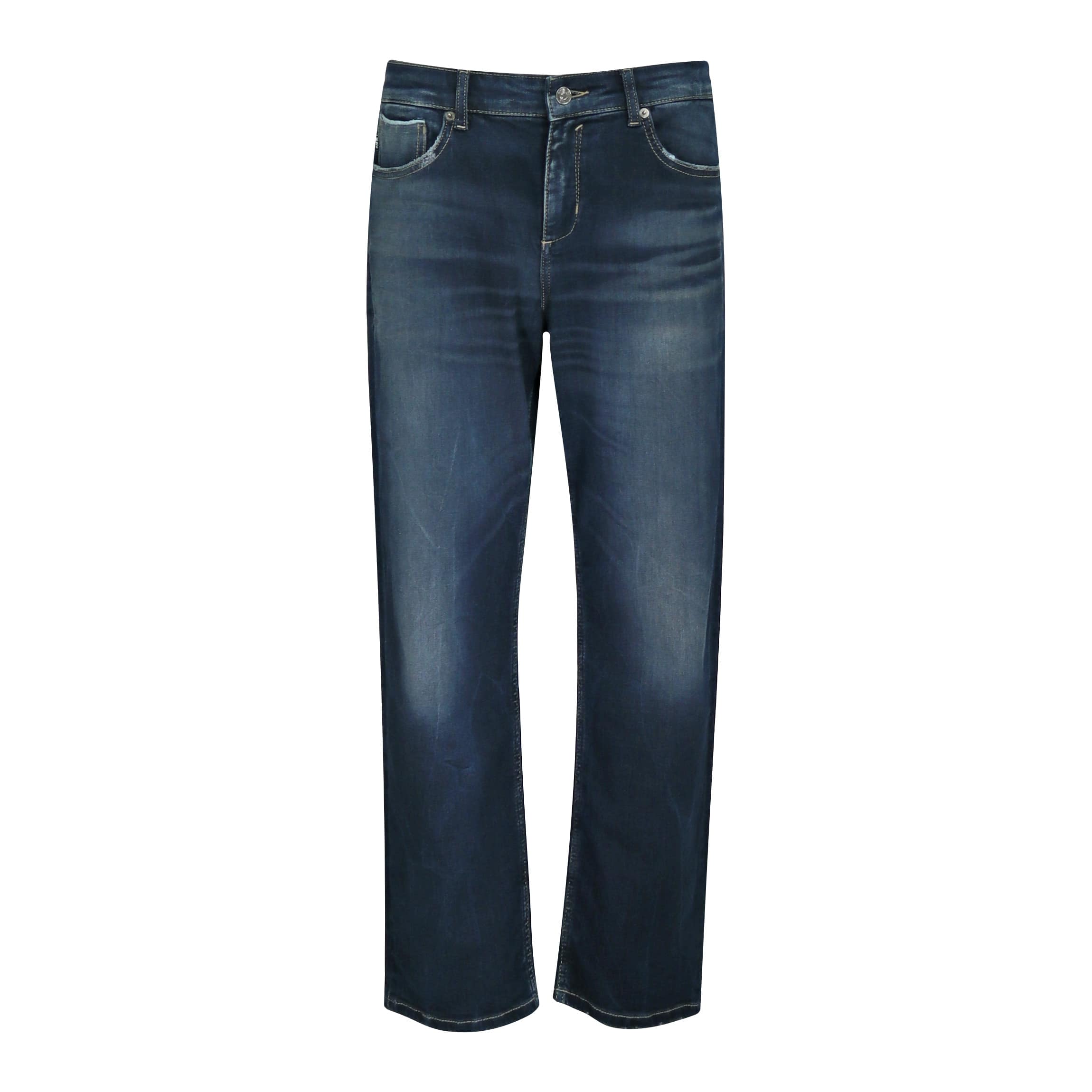 Blauwe jeans van MAC, model Straight, straight fit, straight leg. Deze los vallende broek is gemaakt van stretch denim, heeft een normale taille en een rechte pasvorm. De broek sluit met een knoopsluiting en heeft twee steekzakken en twee achterzakken.