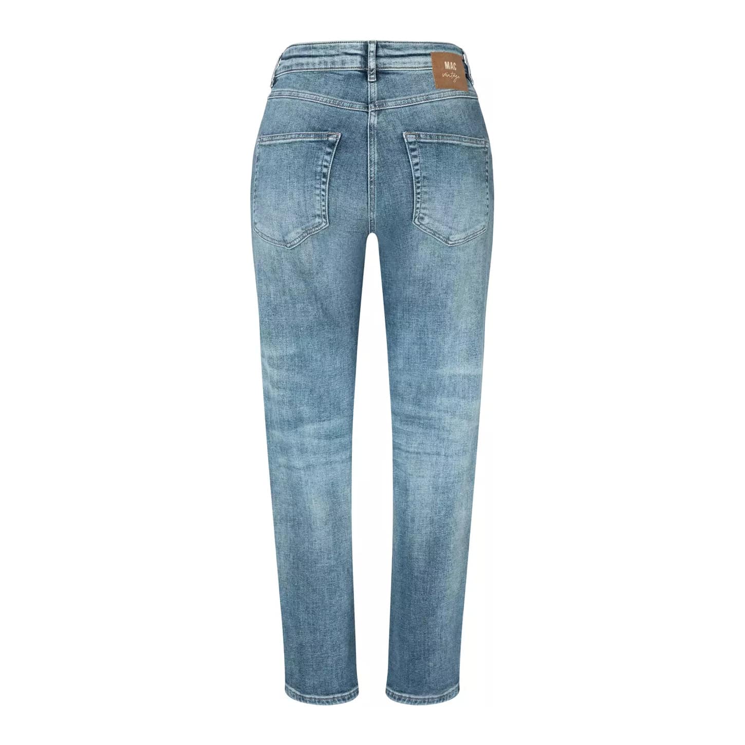 Blauwe jeans van MAC, model Texas. Deze cropped broek is gemaakt van stretch denim en heeft een relaxte slim fit pasvorm. De jeans sluit met een knoop- en ritssluiting, heeft een hogere taille, twee steekzakken en twee achterzakken.