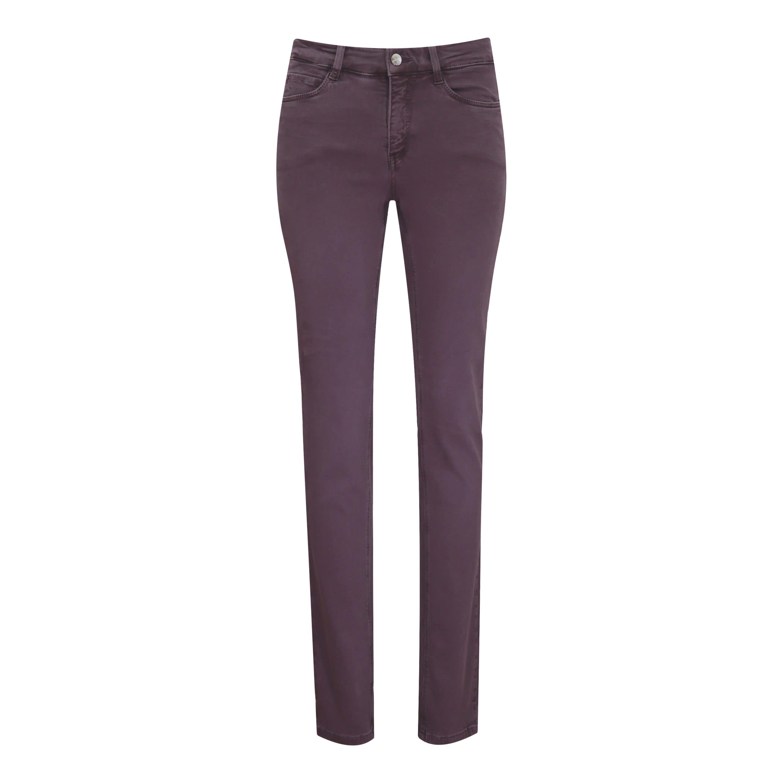 Bruine jeans van MAC, model Dream, straight leg. Deze broek is gemaakt van een bruine denim stretch stof. De jeans sluit met een knoop- en ritssluiting, heeft twee steekzakken, twee achterzakken, normale taille en een rechte pasvorm.