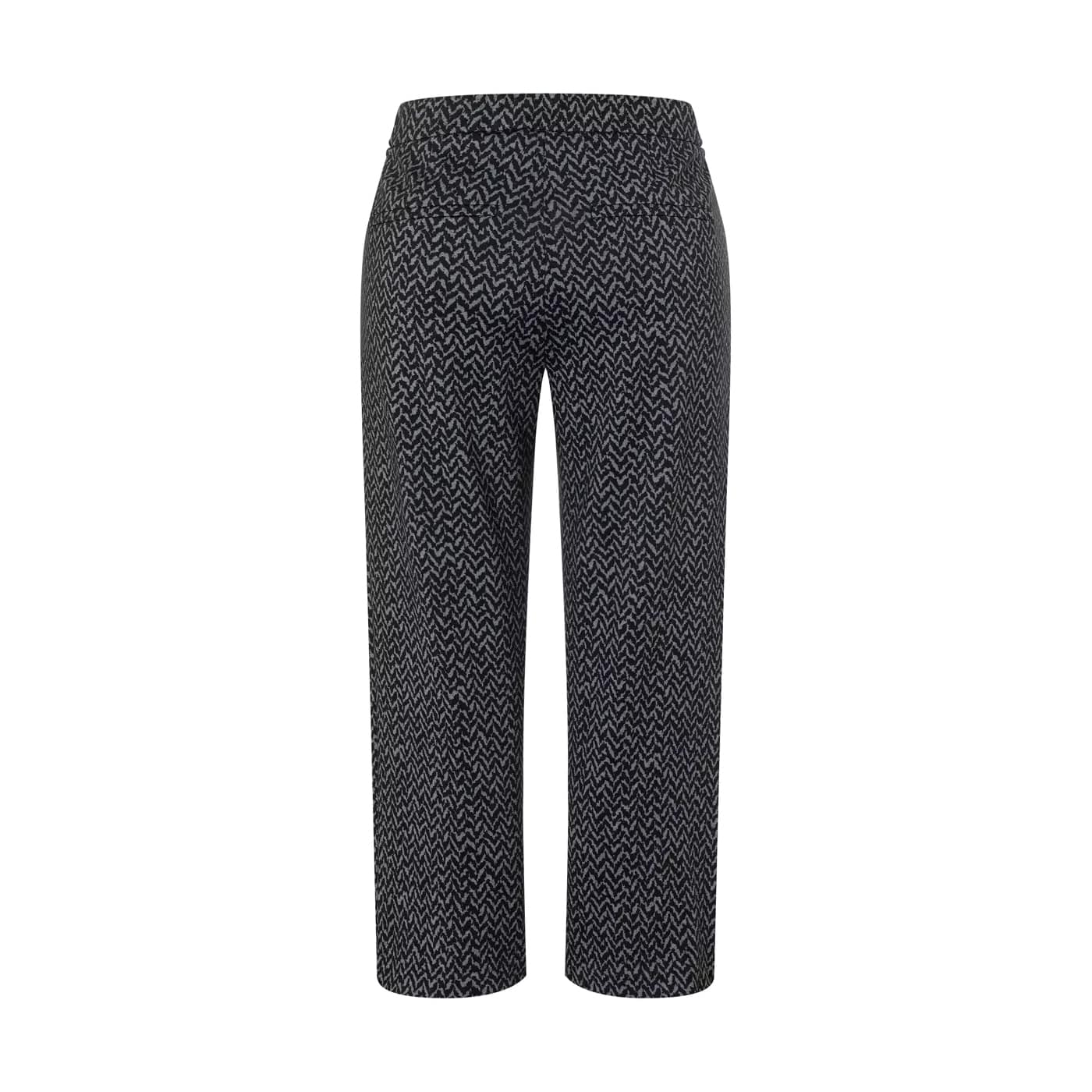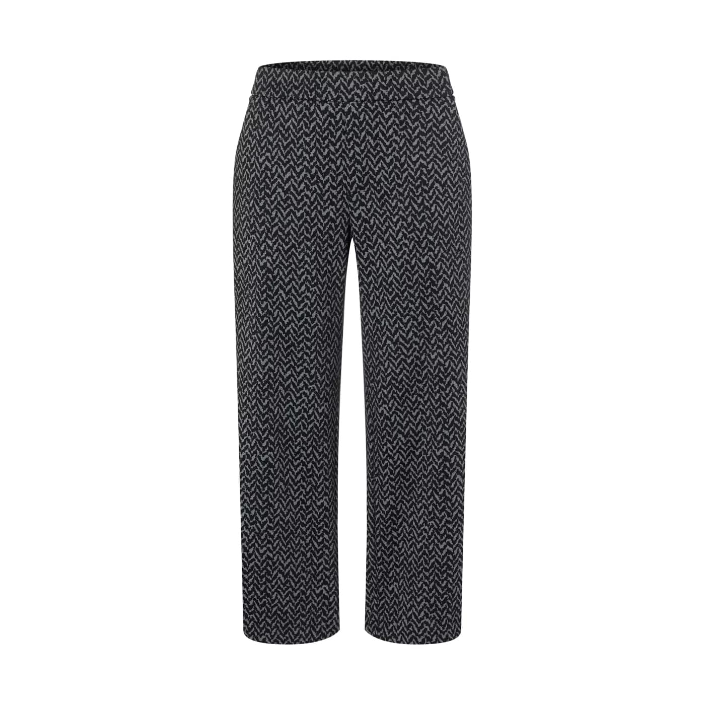 Grijs, zwarte pantalon van MAC, model Chiara Cropped. Deze relaxte 7/8 pantalon is gemaakt van soepel vallende stretch stof, heeft wijde rechte broekspijpen en valt boven de enkels. De wijde broek heeft een elastische taille en twee steekzakken.