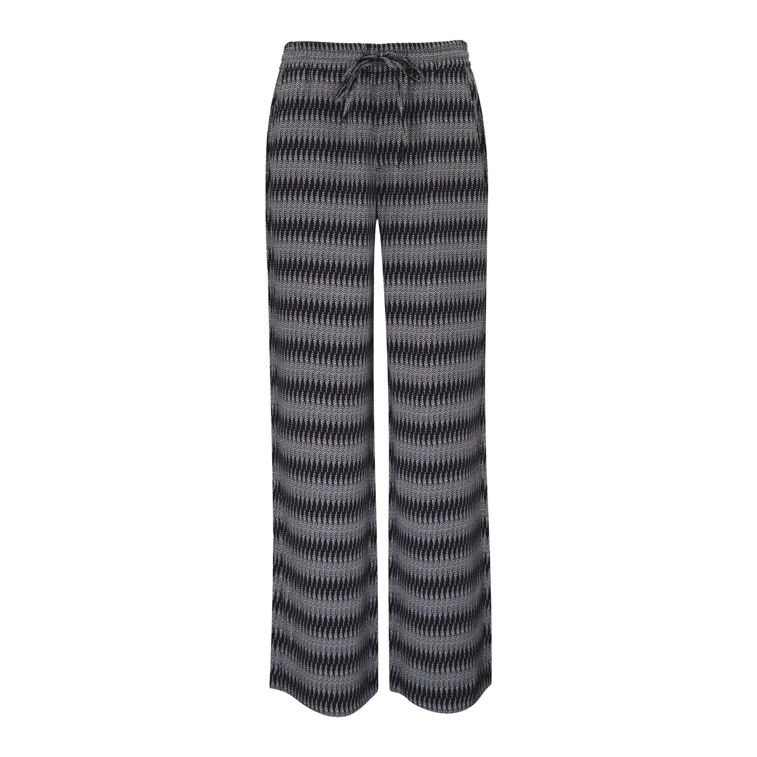 Wijde pantalon van MAC, model Chiara summer. Deze relaxte broek is gemaakt van een soepelvallende stof met een zigzag print die bestaat uit de woorden follow your heart. De losvallende broek heeft een elastische taille met trekkoord, twee steekzakken en wijde, rechte broekspijpen.