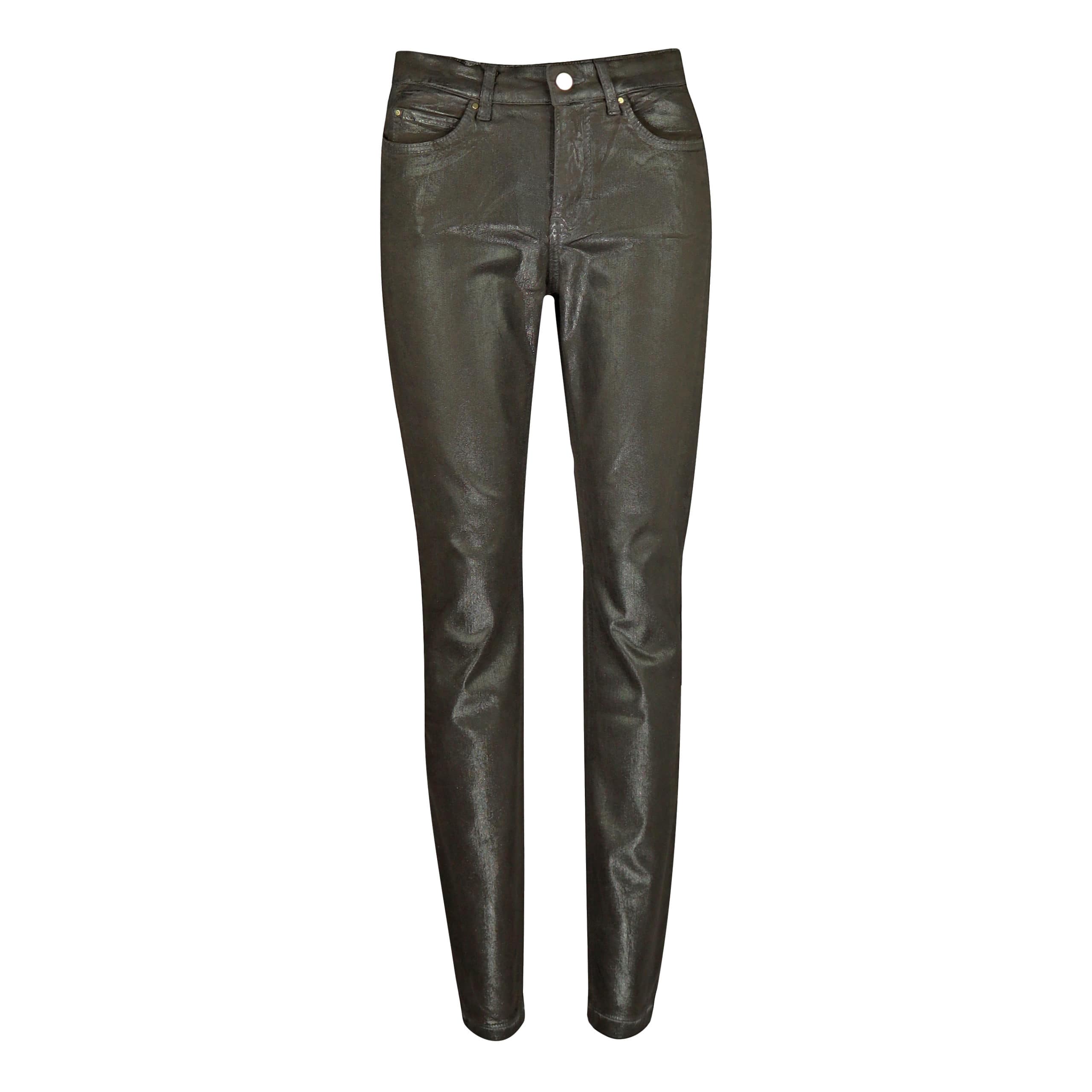 Coated jeans van MAC, model Dream Skinny push up, skinny leg. Deze groen bruine broek sluit met een knoop- en ritssluiting, heeft twee steekzakken en twee achterzakken. De jeans is gemaakt van een denim stretch stof met een goudkleurige coating en heeft een skinny pasvorm.