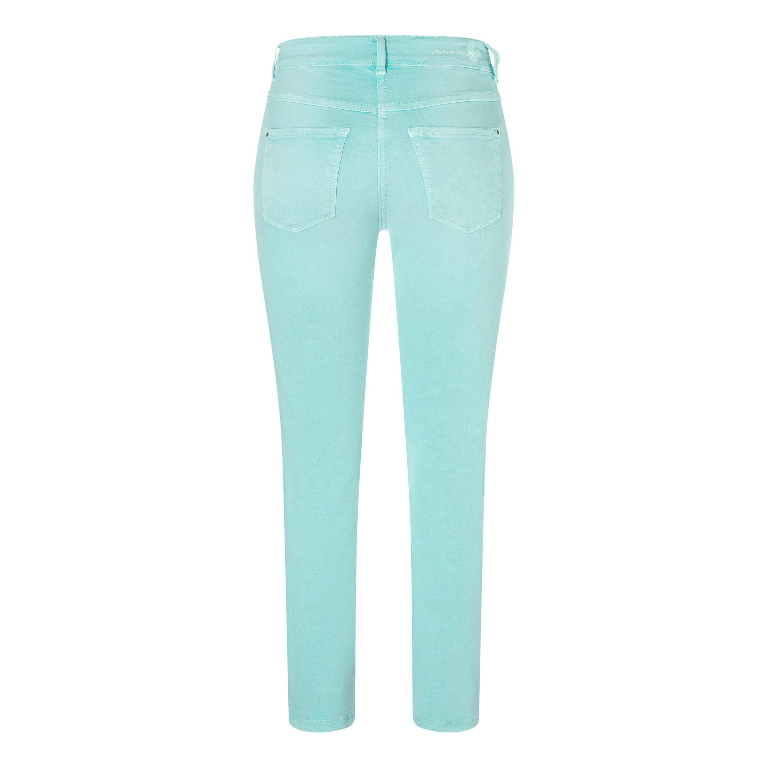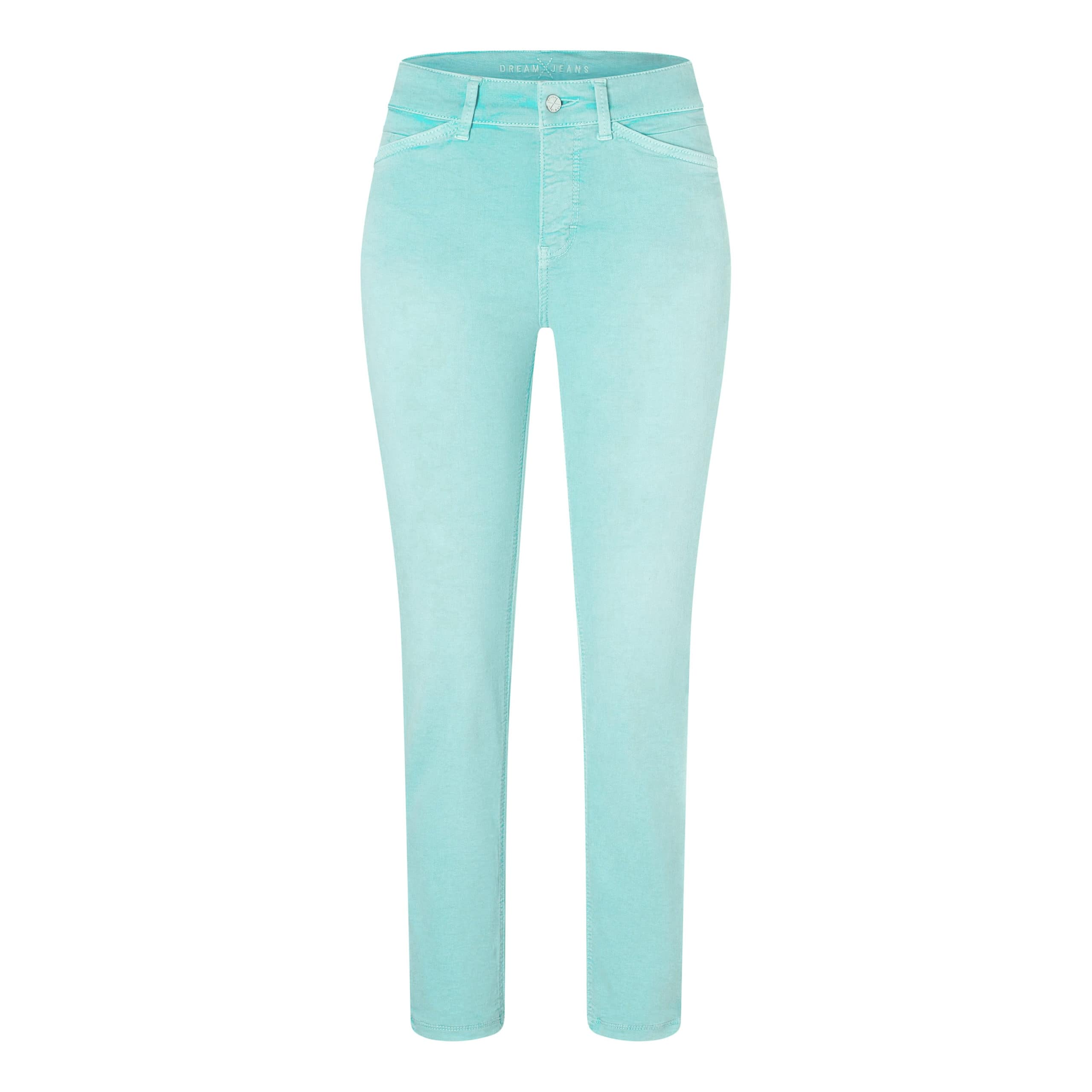 Curacao blauwe jeans van MAC Jeans, model Dream Chic, slim leg. Deze broek is gemaakt van stretch denim en heeft een normale taille met slim fit pasvorm. De jeans sluit met een knoop- en ritssluiting, heeft twee steekzakken, twee achterzakken en ritsjes onderaan de broekspijpen.