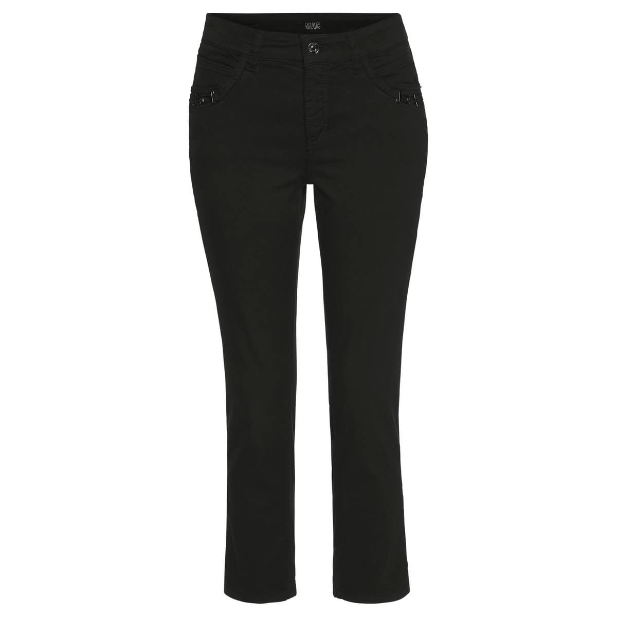 Zeer donkerblauwe broek van MAC, model Mel Cropped Chic feminine fit slim leg in dark navy blue. Deze 7/8 katoenen broek heeft een iets verhoogde smalle taille met een slim fit pasvorm. De cropped broek sluit met een knoop- en ritssluiting, heeft twee steekzakken en twee achterzakken.