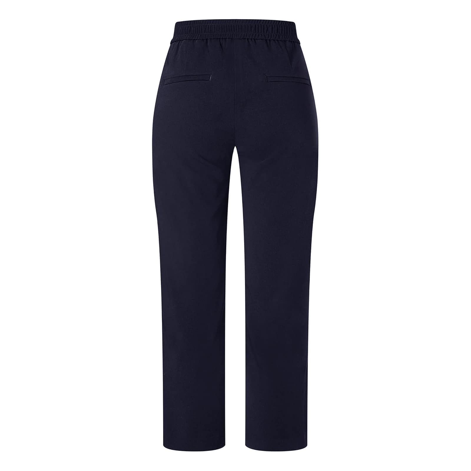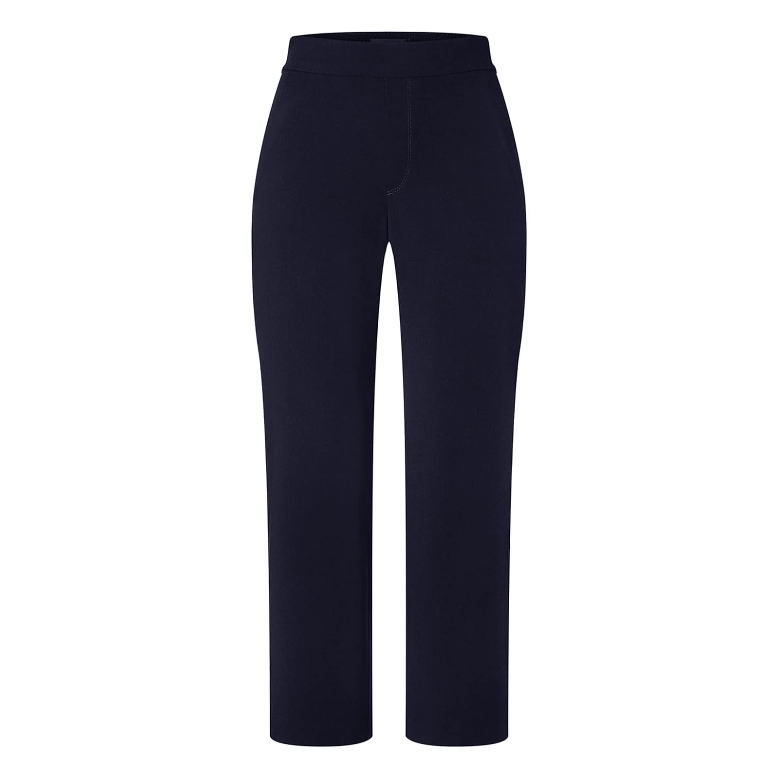 Donkerblauwe pantalon van MAC, model Chiara cropped. Deze relaxte 7/8 pantalon is gemaakt van soepel vallende stretch stof, heeft wijde rechte broekspijpen en valt boven de enkels. De losvallende broek heeft een elastische taille, twee steekzakken en twee paspelzakken.