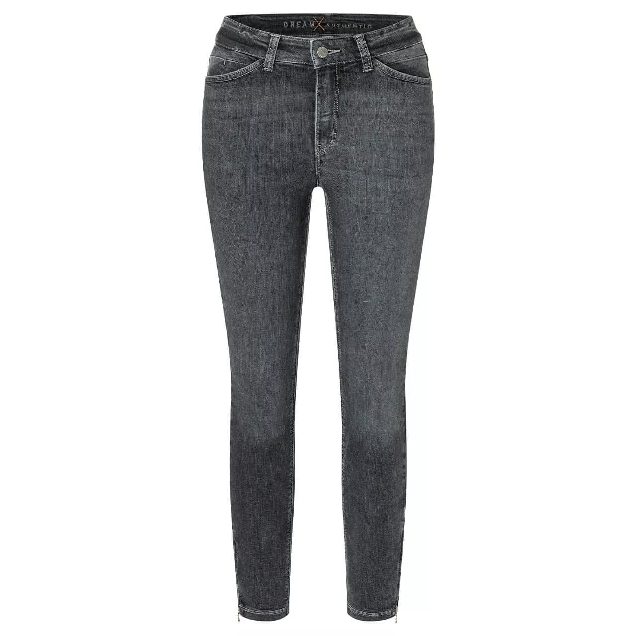 Donkergrijze jeans van MAC Jeans, model Dream Chic Authentic, slim leg. Deze broek is gemaakt van stretch denim en heeft een normale taille met slim fit pasvorm. De jeans sluit met een knoop- en ritssluiting, heeft twee steekzakken, twee achterzakken en ritsjes onderaan de broekspijpen.