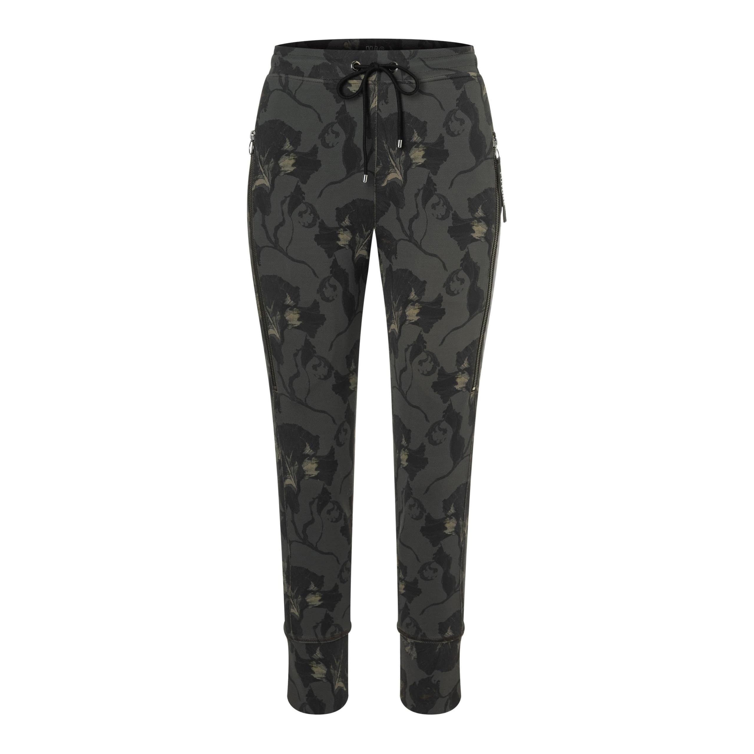 Relaxte pantalon van MAC Jeans, model Future 2.0 in antique moss printed. Deze broek is gemaakt van een soepel vallende stretch stof met een elastische tailleband met trekkoord. De broek heeft taps toelopende broekspijpen met twee zakken achter ritsjes aan de voorzijde en een relaxed slim fit pasvorm.