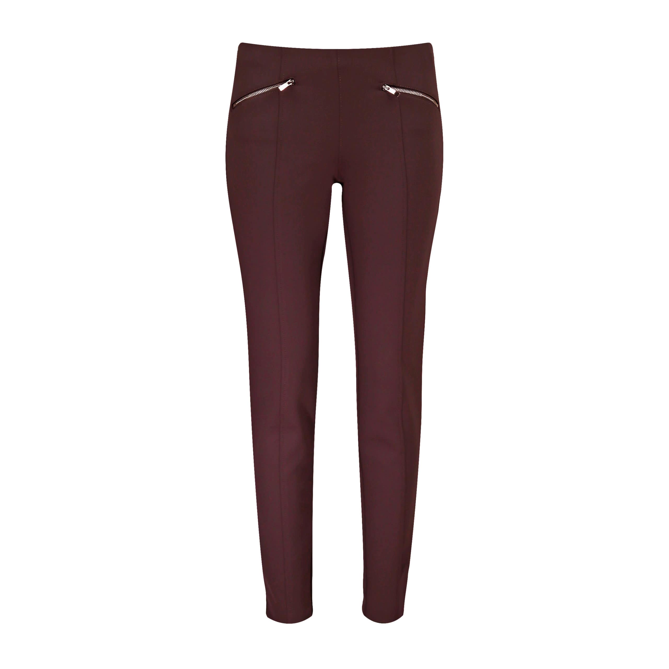 Stretch broek van MAC Jeans, model Dream Ankle luxury. Deze bruine broek heeft een aansluitende pasvorm met een elastische tailleband. In deze elastische tailleband zit aan de zijkant een verborgen ritssluiting met een knoop. De broek is gemaakt van een gladde stretch stof met aan de voorzijde twee steekzakjes met aan de onderzijde van de broekspijpen kleine ritsjes.