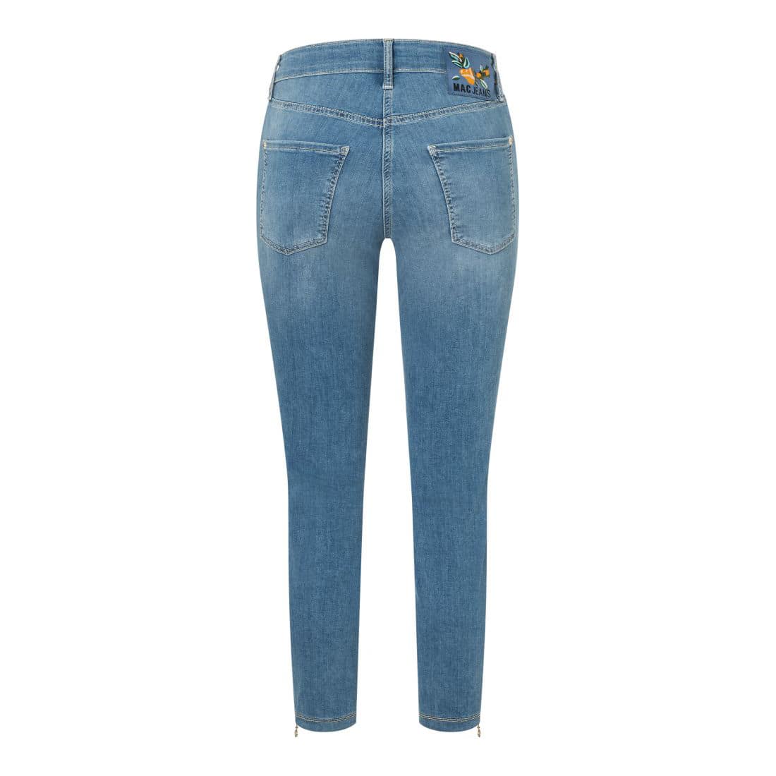 Slim leg jeans van MAC Jeans, model Dream Chic in simple blue wash. Deze blauwe broek is gemaakt van stretch denim en heeft een normale taille met toelopende broekspijpen. De jeans sluit met een knoop- en ritssluiting en heeft twee steekzakken en twee achterzakken. Aan de onderkant van de broekspijpen zitten twee ritsjes.
