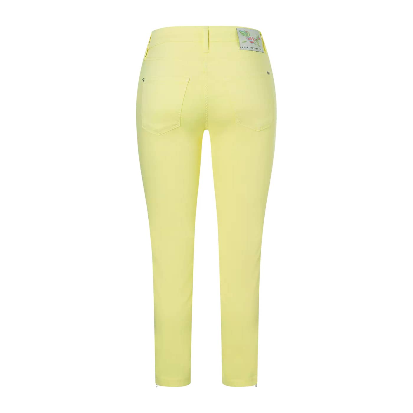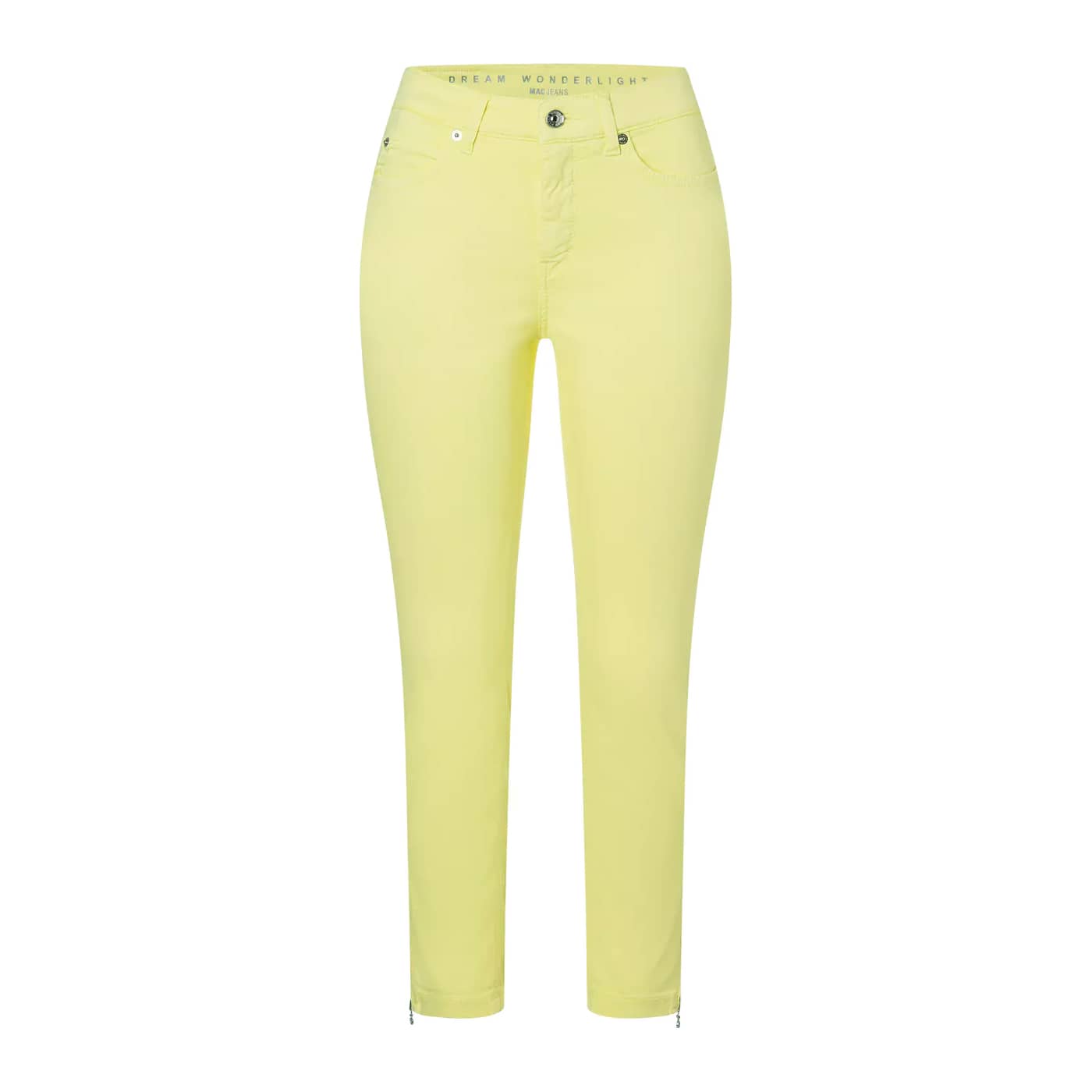 Slim leg jeans van MAC, model Dream Chic, slim leg. Deze licht beige broek is gemaakt van stretch denim (wonderlight) en heeft een normale taille met toelopende broekspijpen. De jeans sluit met een knoop- en ritssluiting en heeft twee steekzakken en twee achterzakken. Aan de onderkant van de broekspijpen zitten twee ritsjes.