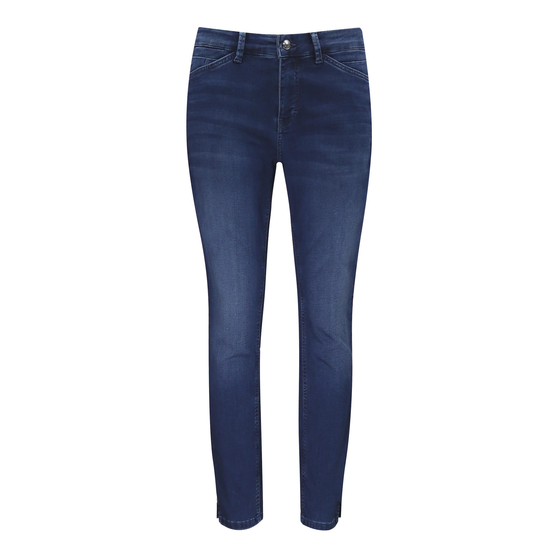 Cropped jeans van MAC, model Dream Summer, slim leg. Deze 7/8 broek is gemaakt van een katoenen stretch stof (wonderlight), heeft een normale taille en kleine splitjes aan het einde van de broekspijpen. De pantalon sluit met een knoop- en ritssluiting, heeft twee steekzakken en twee achterzakken.