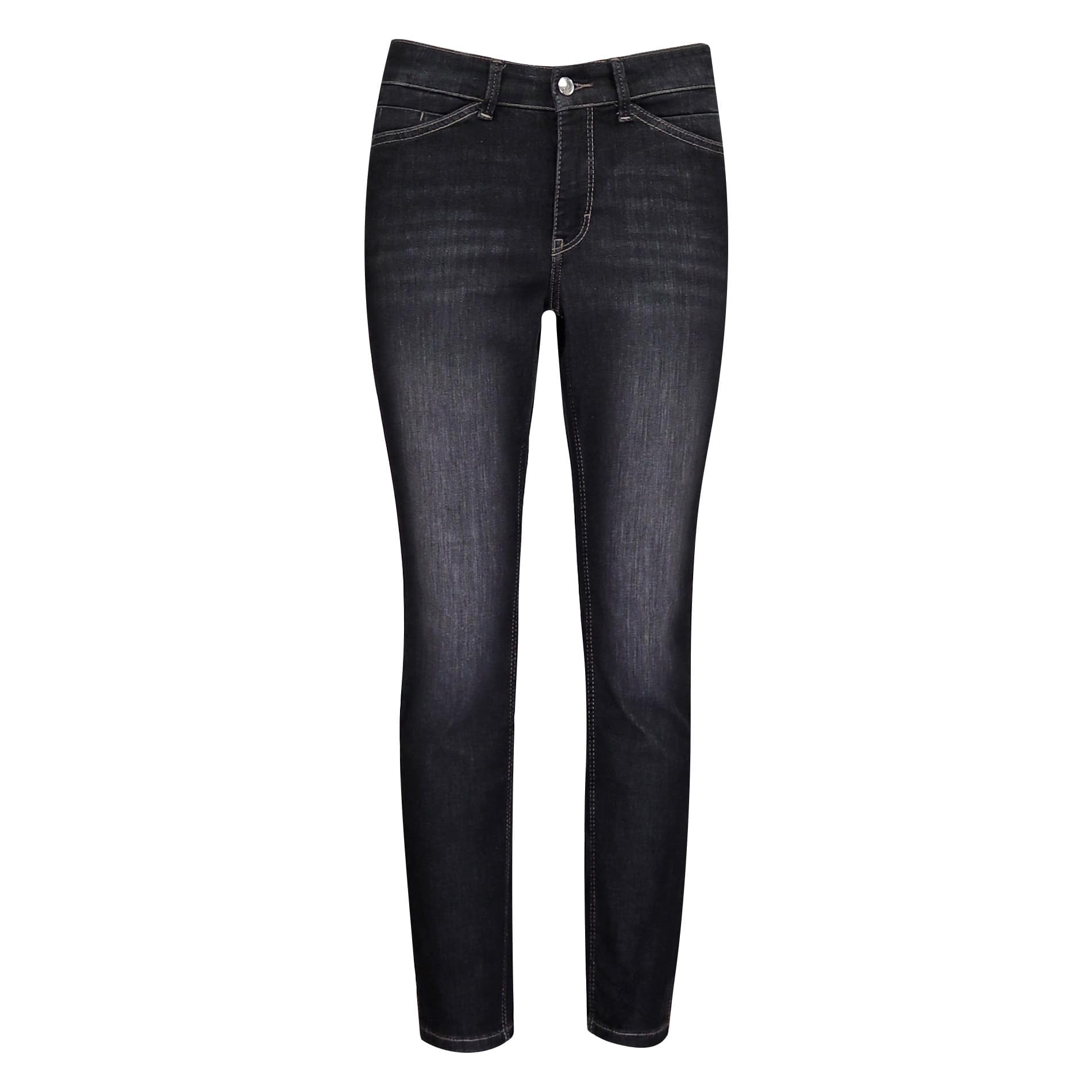 Cropped jeans van MAC, model Dream Summer, slim leg. Deze 7/8 broek is gemaakt van een katoenen stretch stof (wonderlight), heeft een normale taille en kleine splitjes aan het einde van de broekspijpen. De pantalon sluit met een knoop- en ritssluiting, heeft twee steekzakken en twee achterzakken.