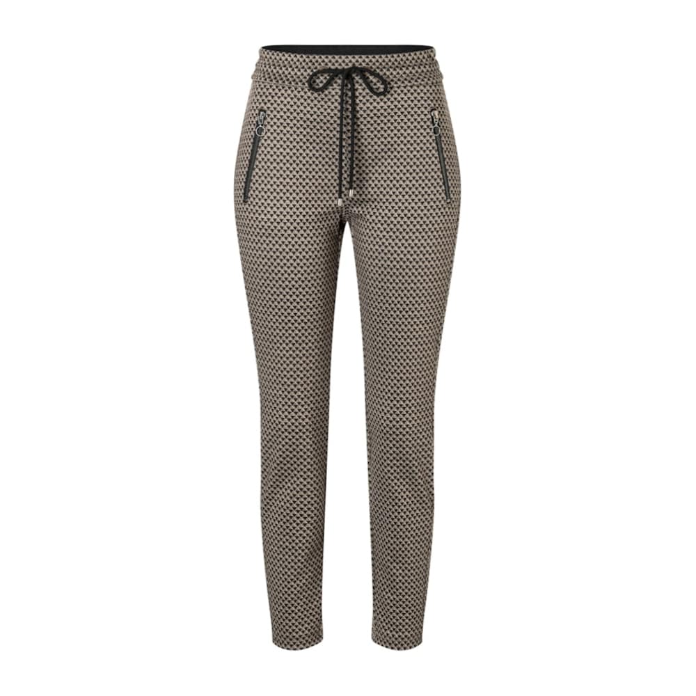 Relaxte pantalon van MAC, model Easy smart in terra print. Deze 7/8 broek is gemaakt van een jersey stretch stof en heeft twee zakken achter een ritssluiting. De pantalon heeft een elastische taille met trekkoord en een slim fit pasvorm.